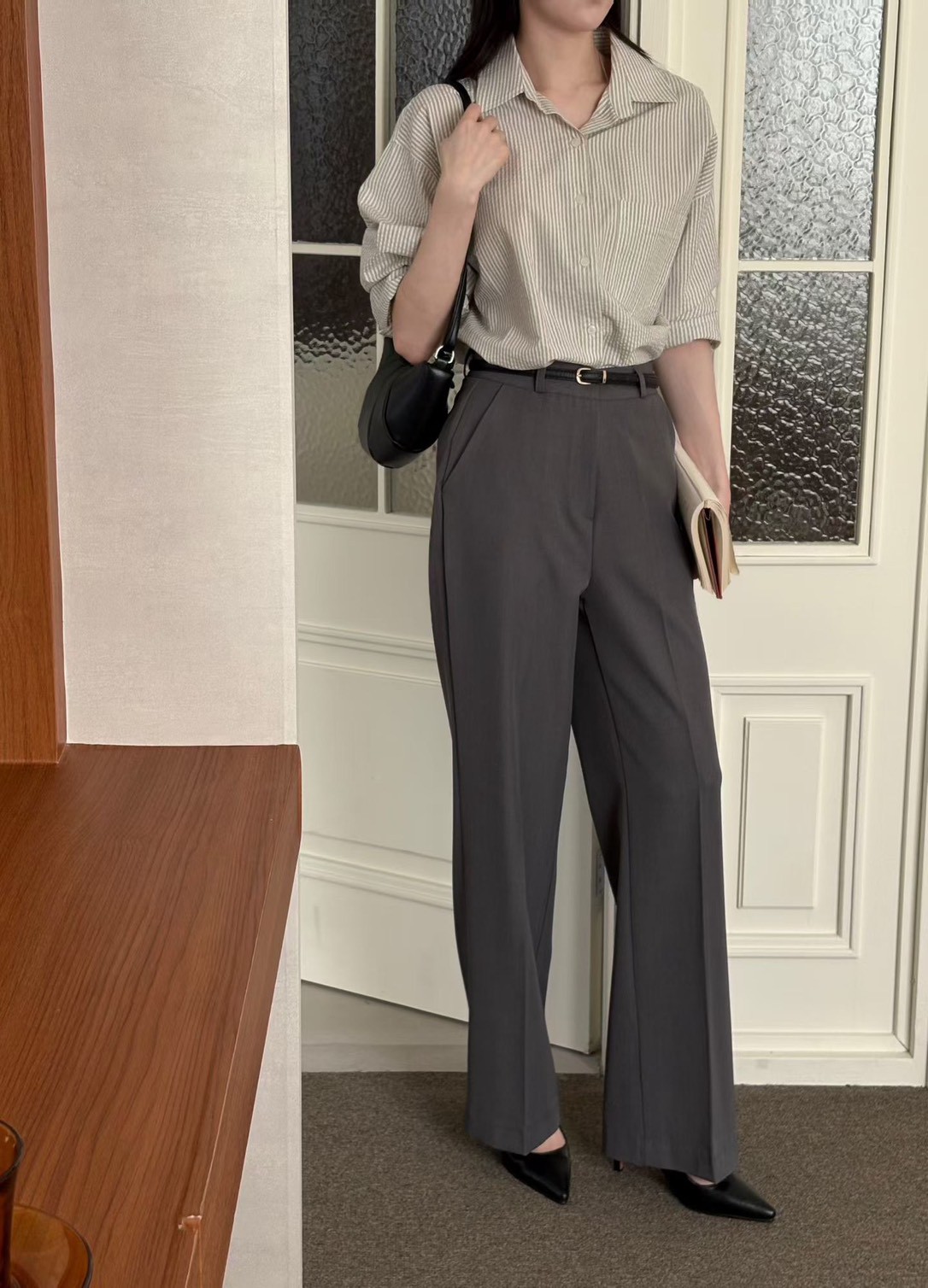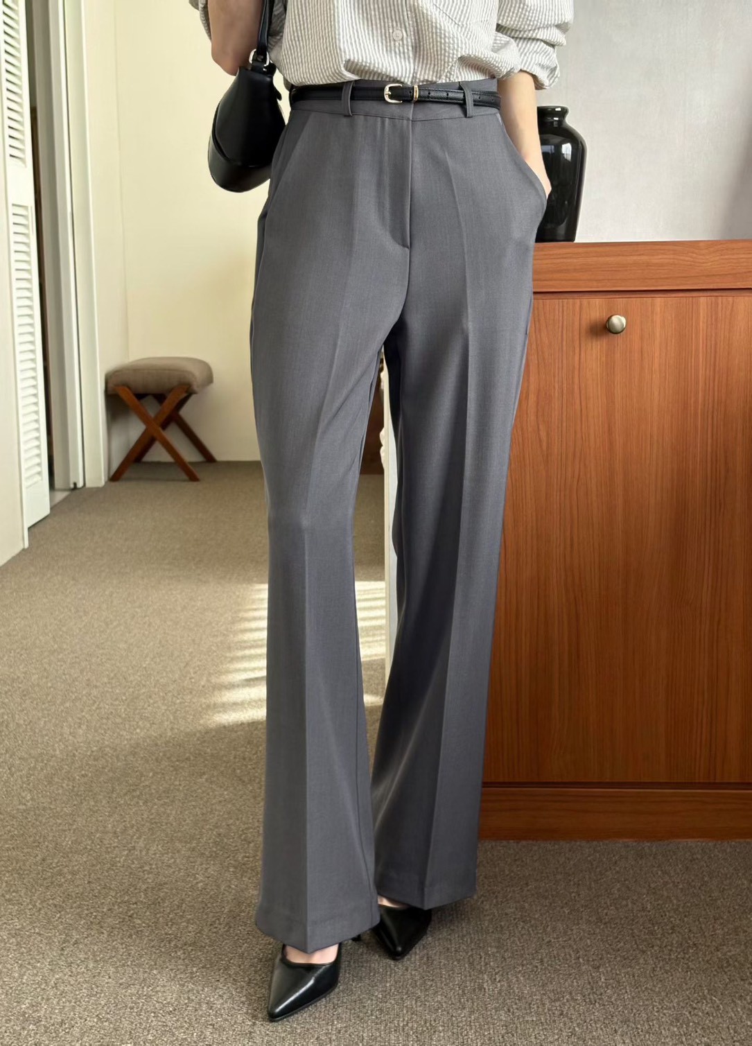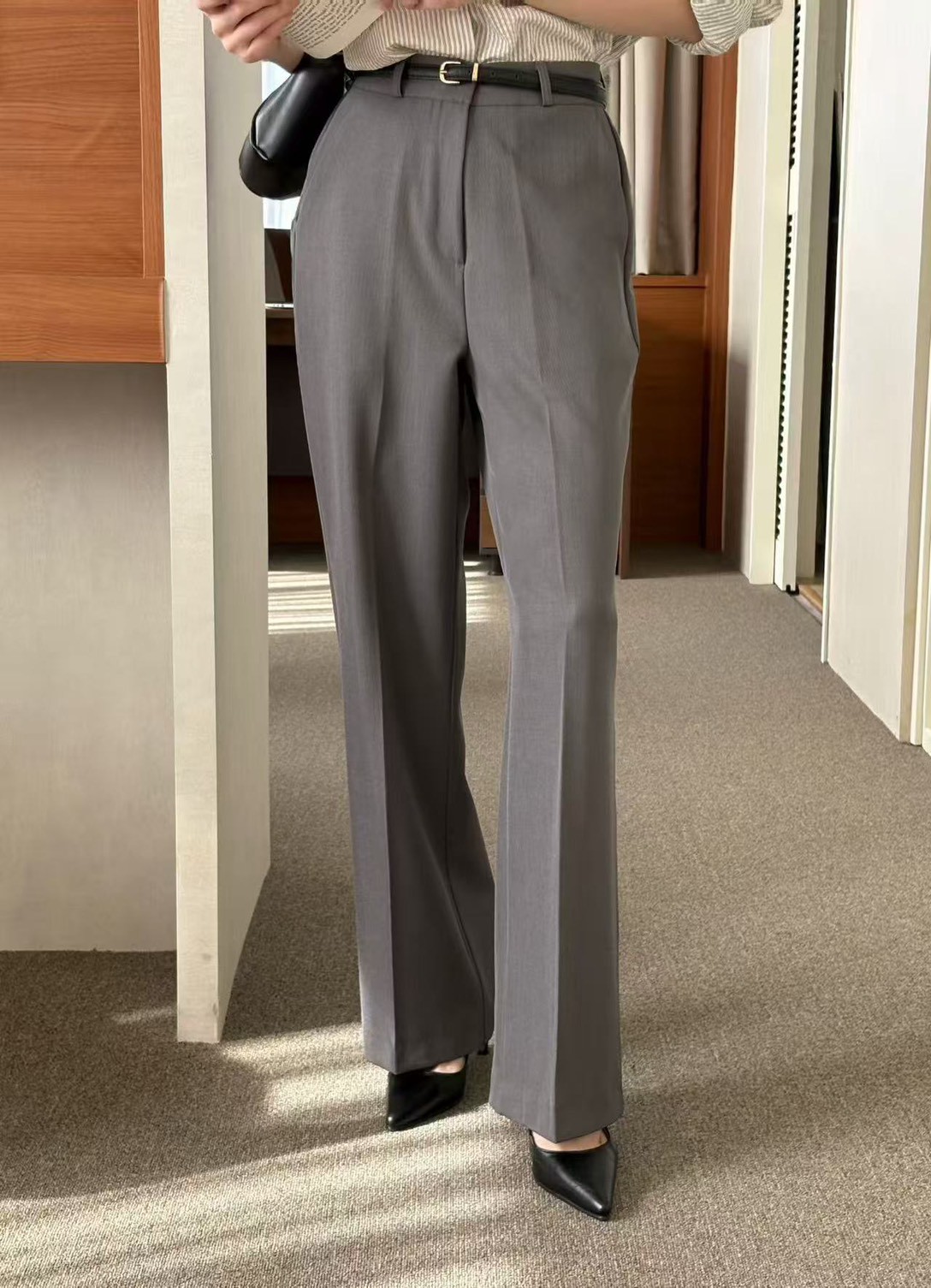 高腰春季薄款直筒西裝褲