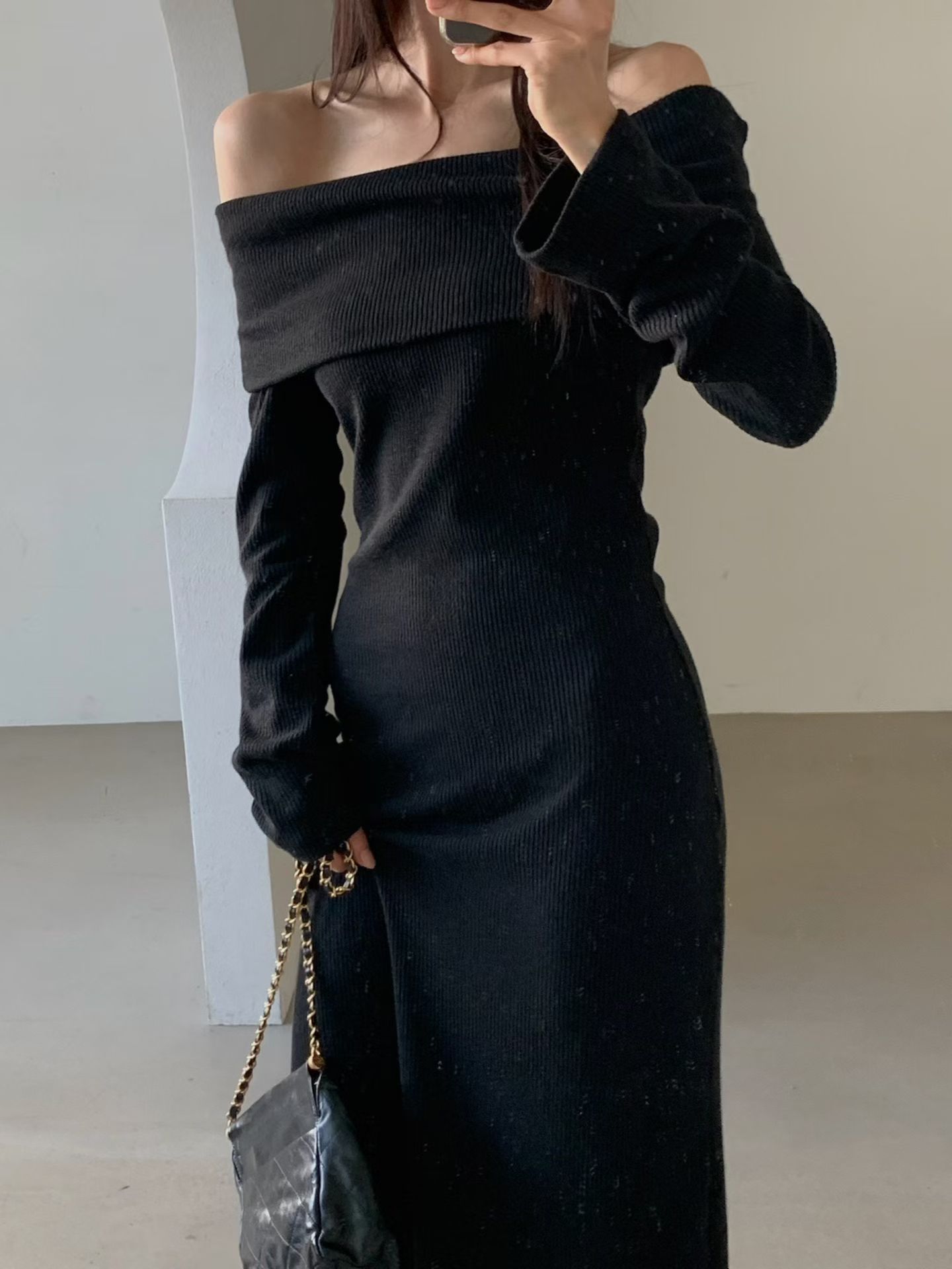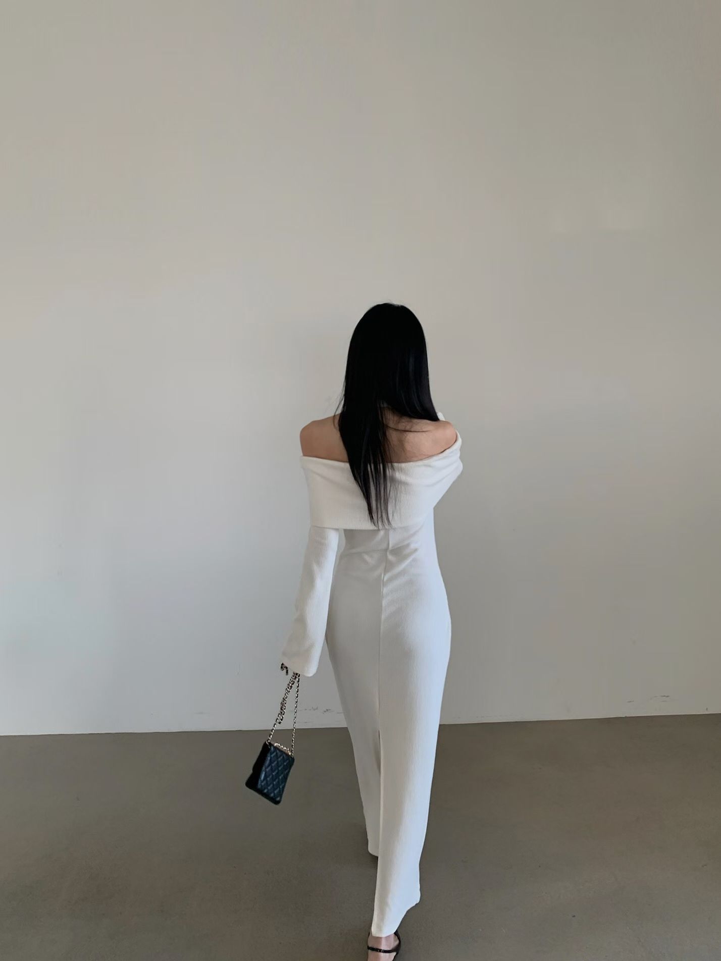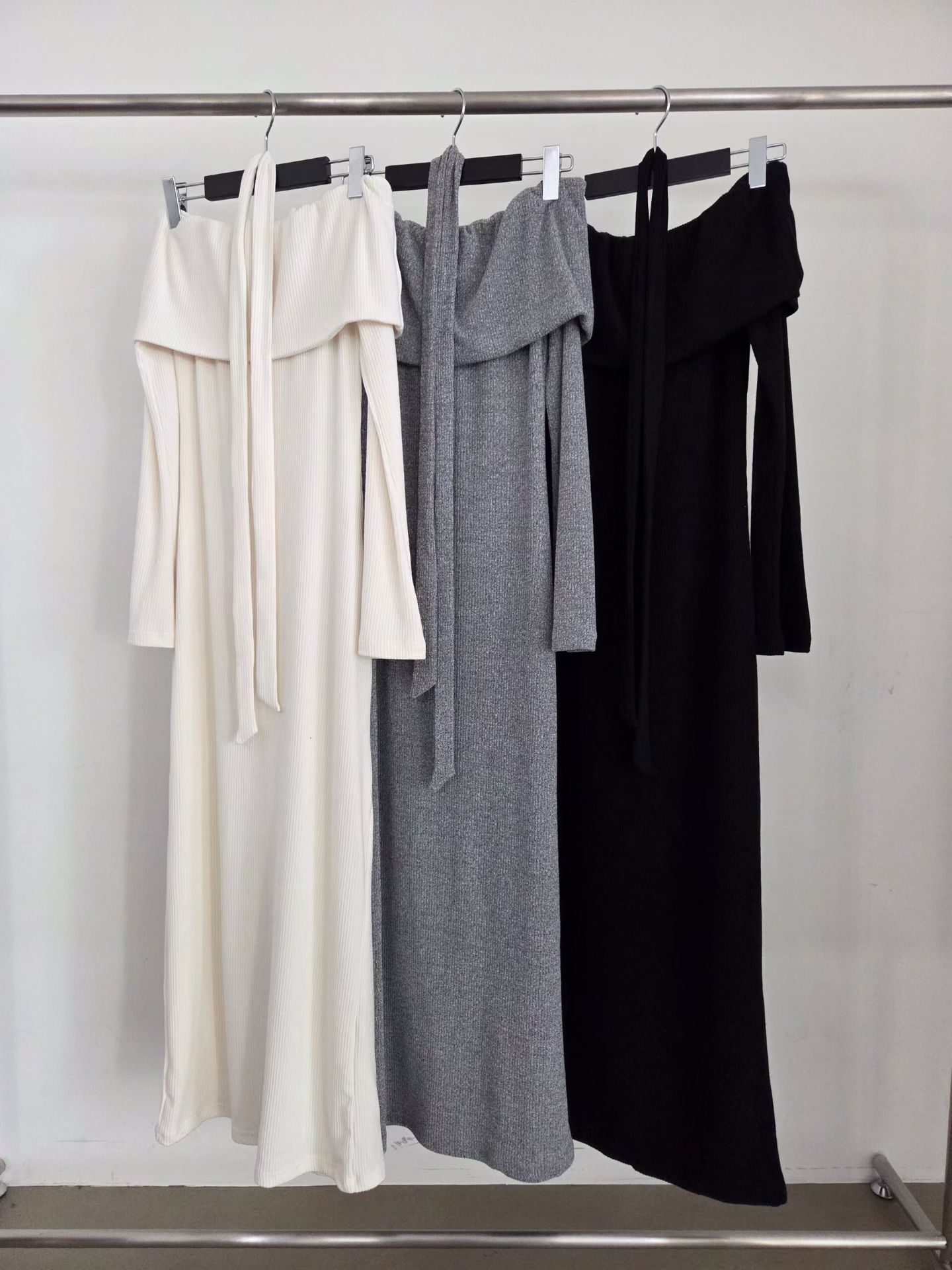 反摺平口領後開衩針織長洋(附綁帶)
