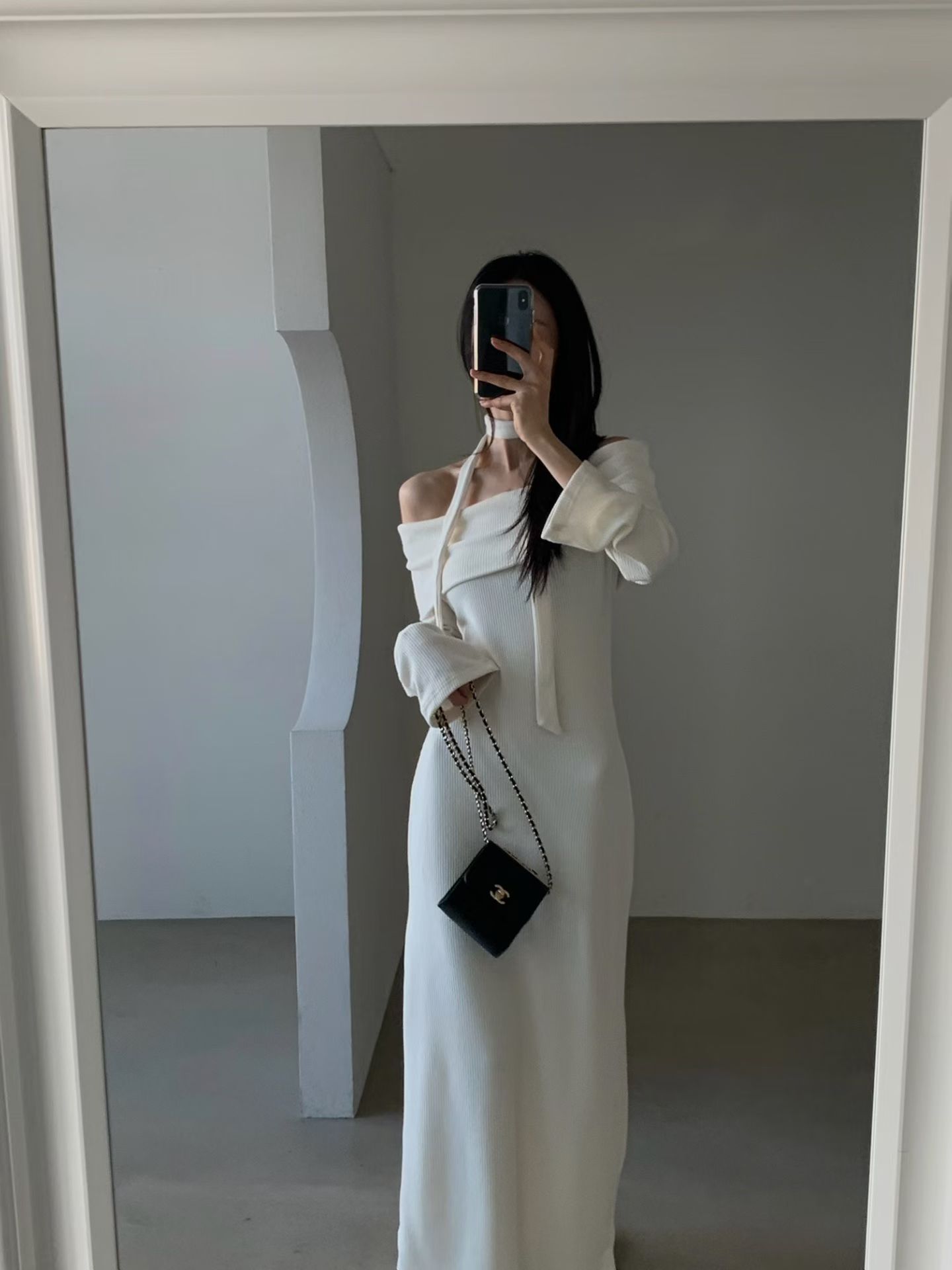 極簡中高腰白色微寬褲