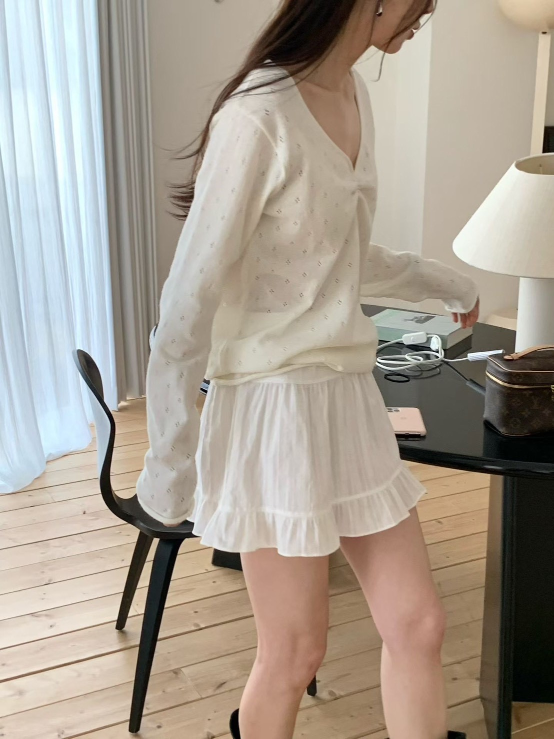微垂墜交錯V領針織衫