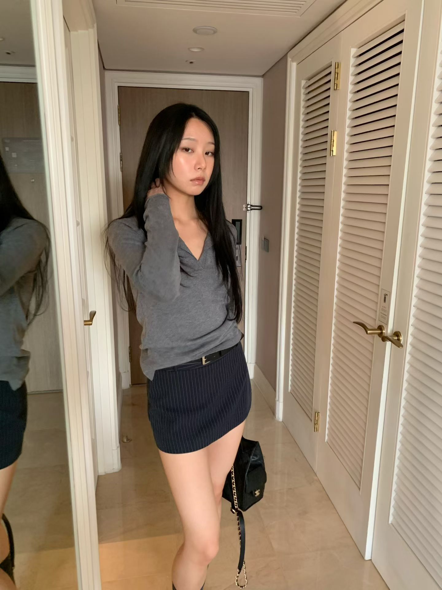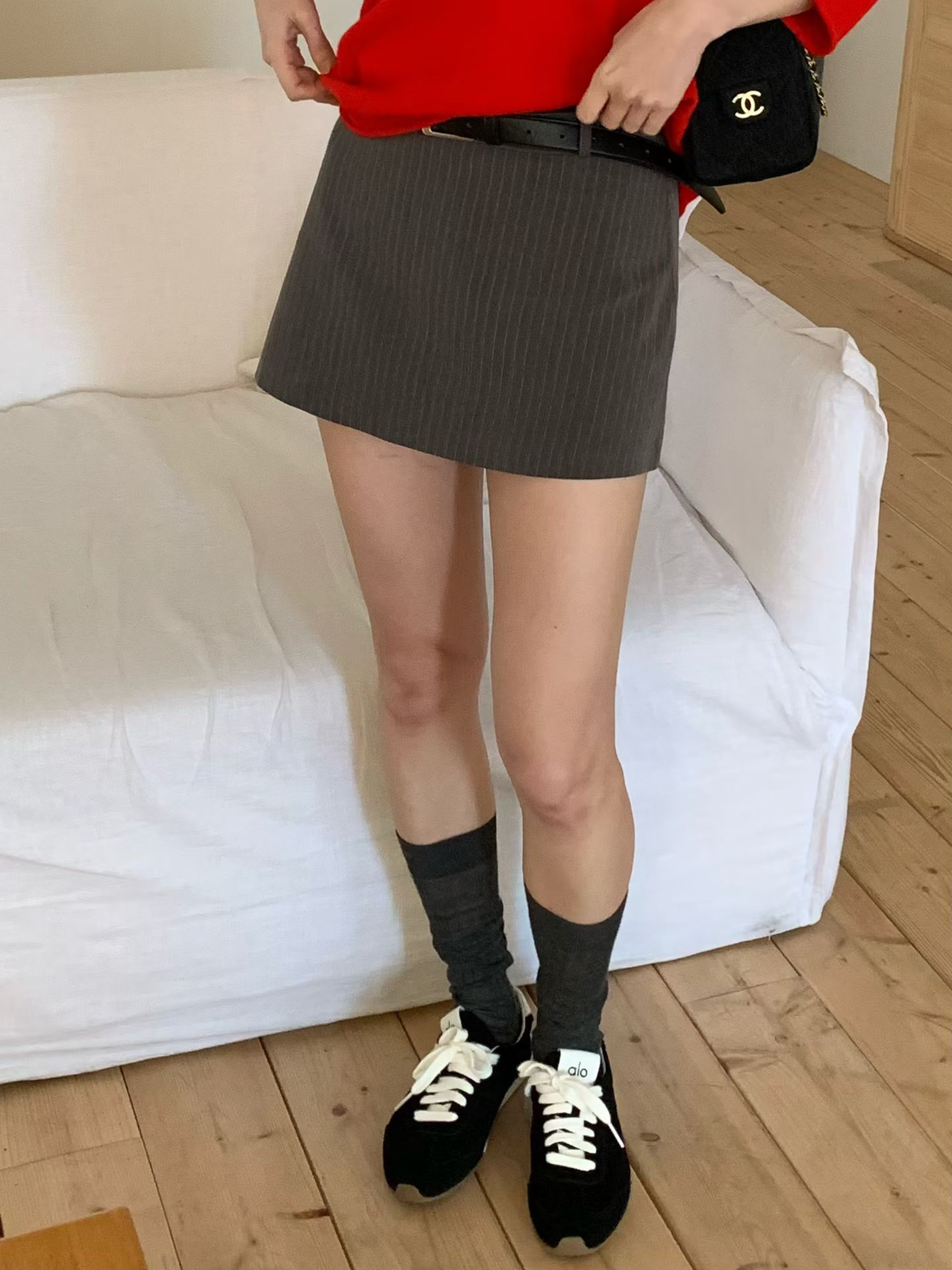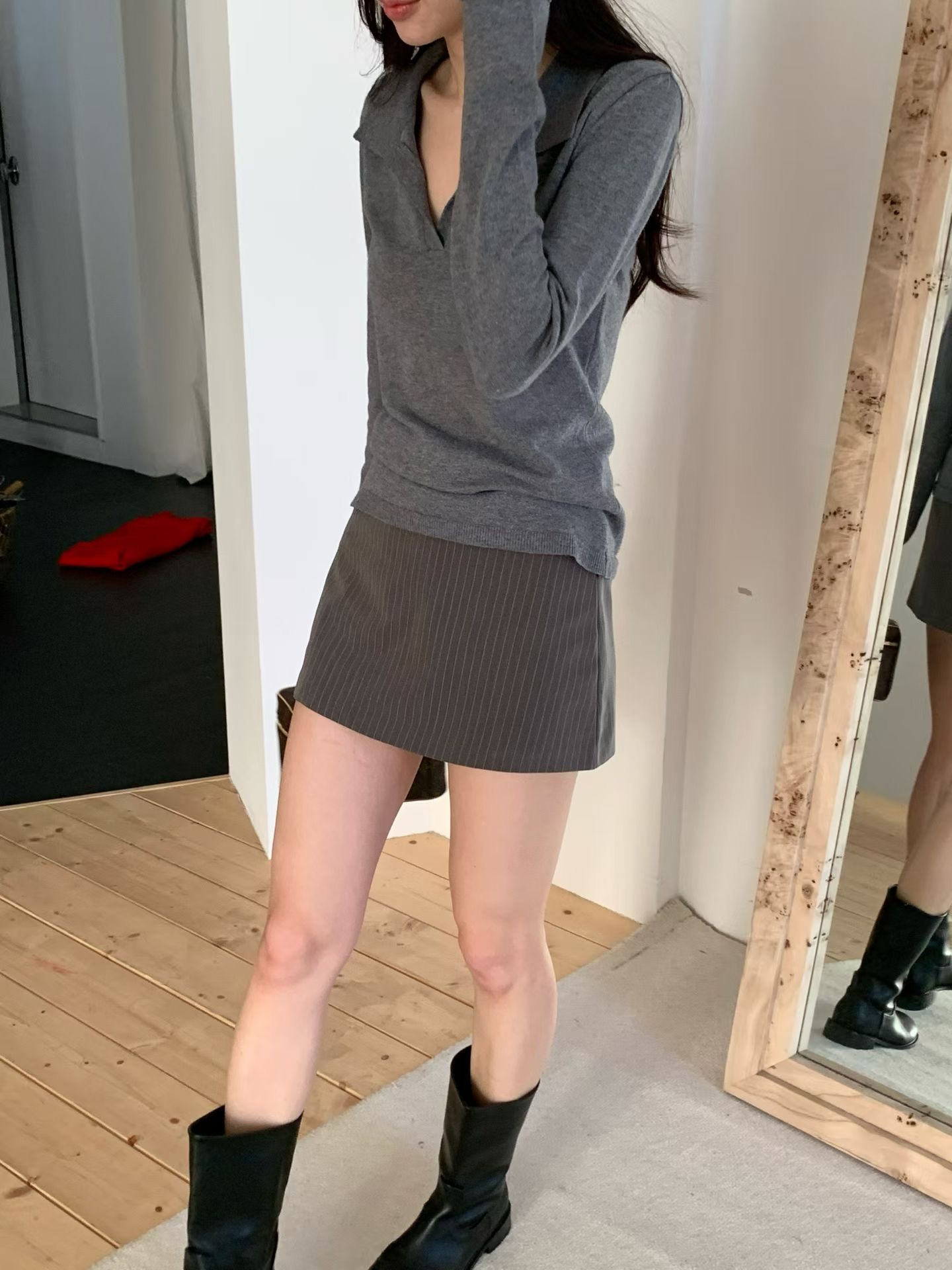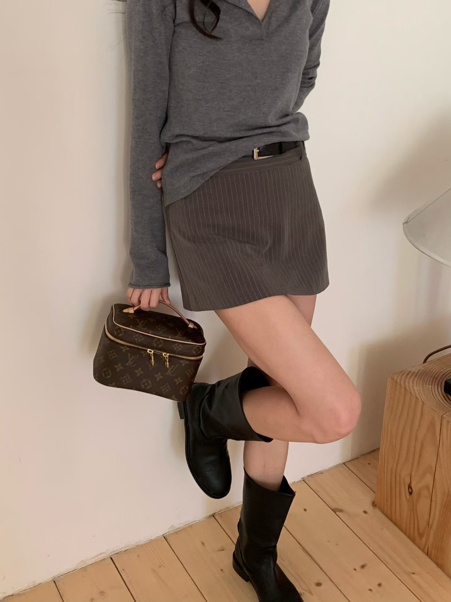 低腰直紋西裝短褲裙