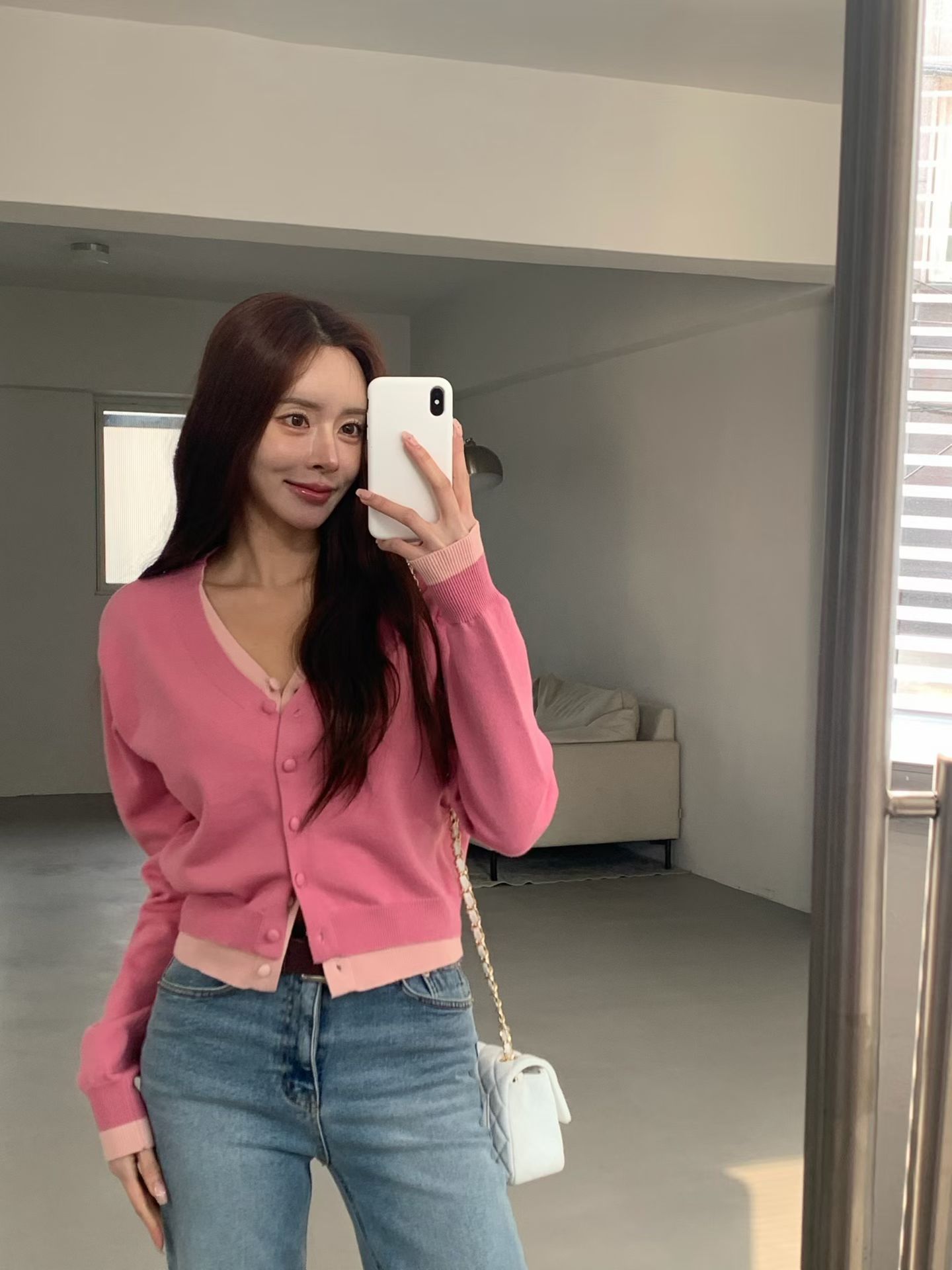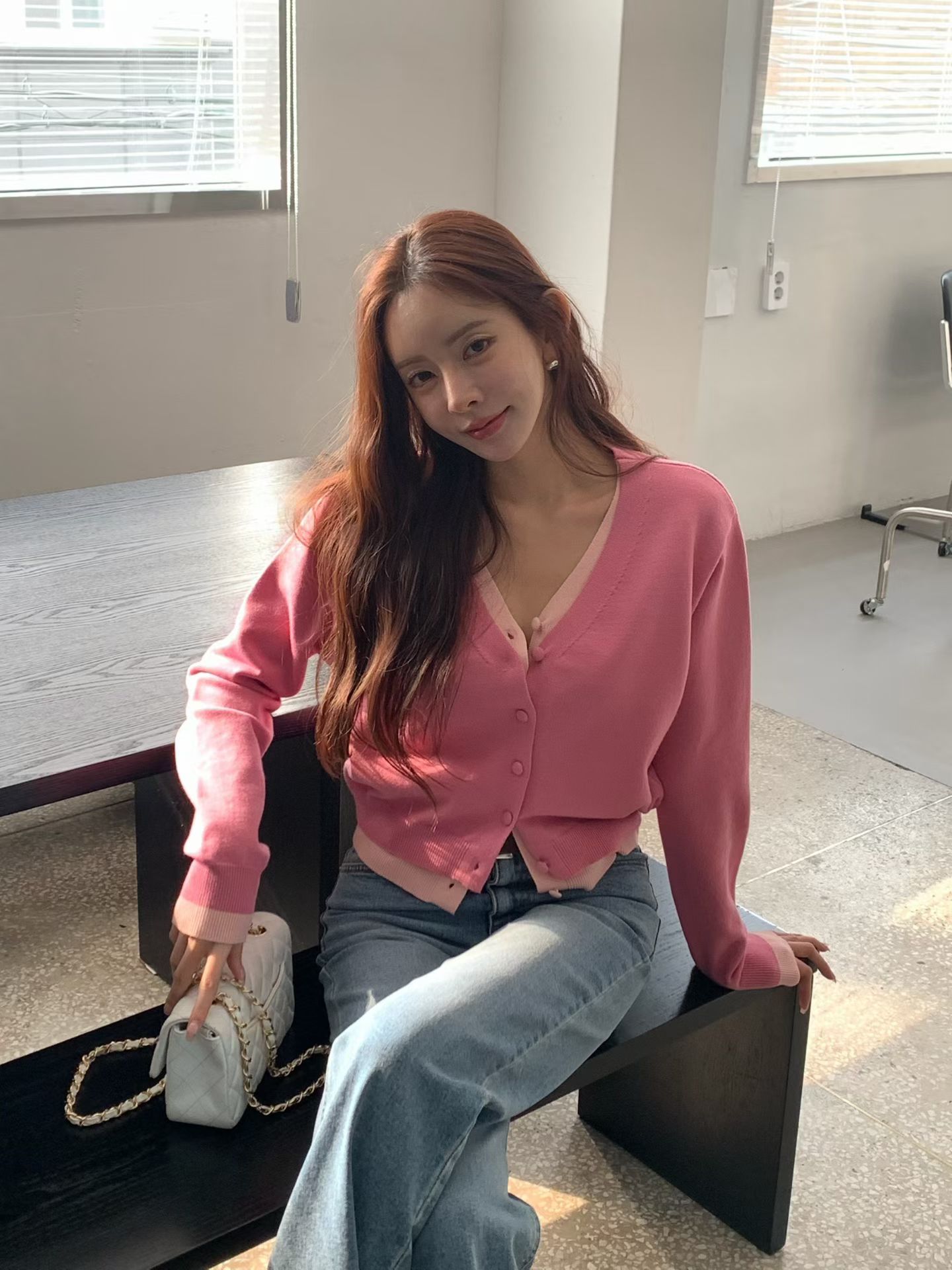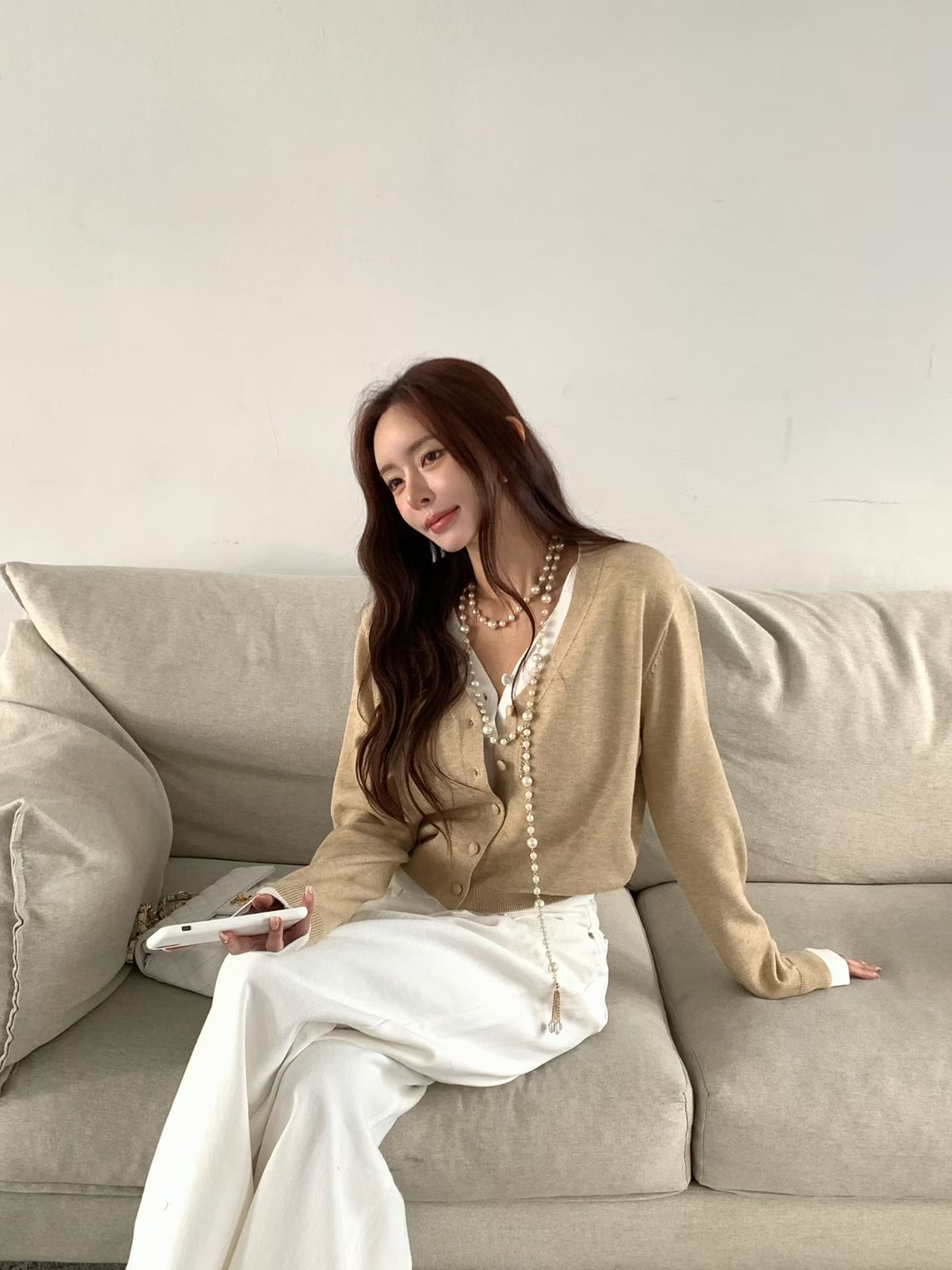 V領牌釦開衩下擺針織衣