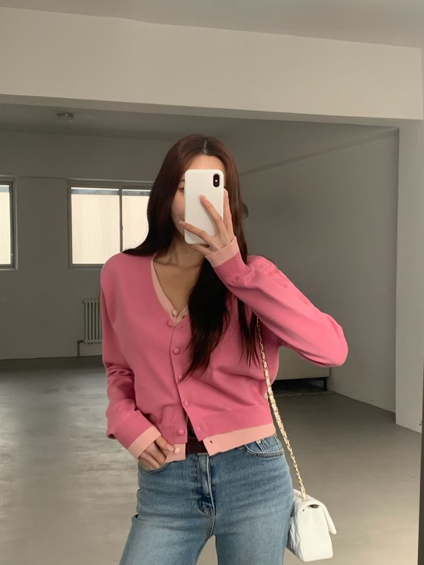 假兩件撞色U領排釦針織衫