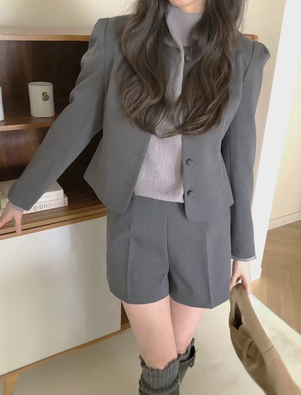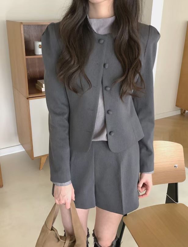 公主袖包釦西外+西裝短褲SET(可拆買)