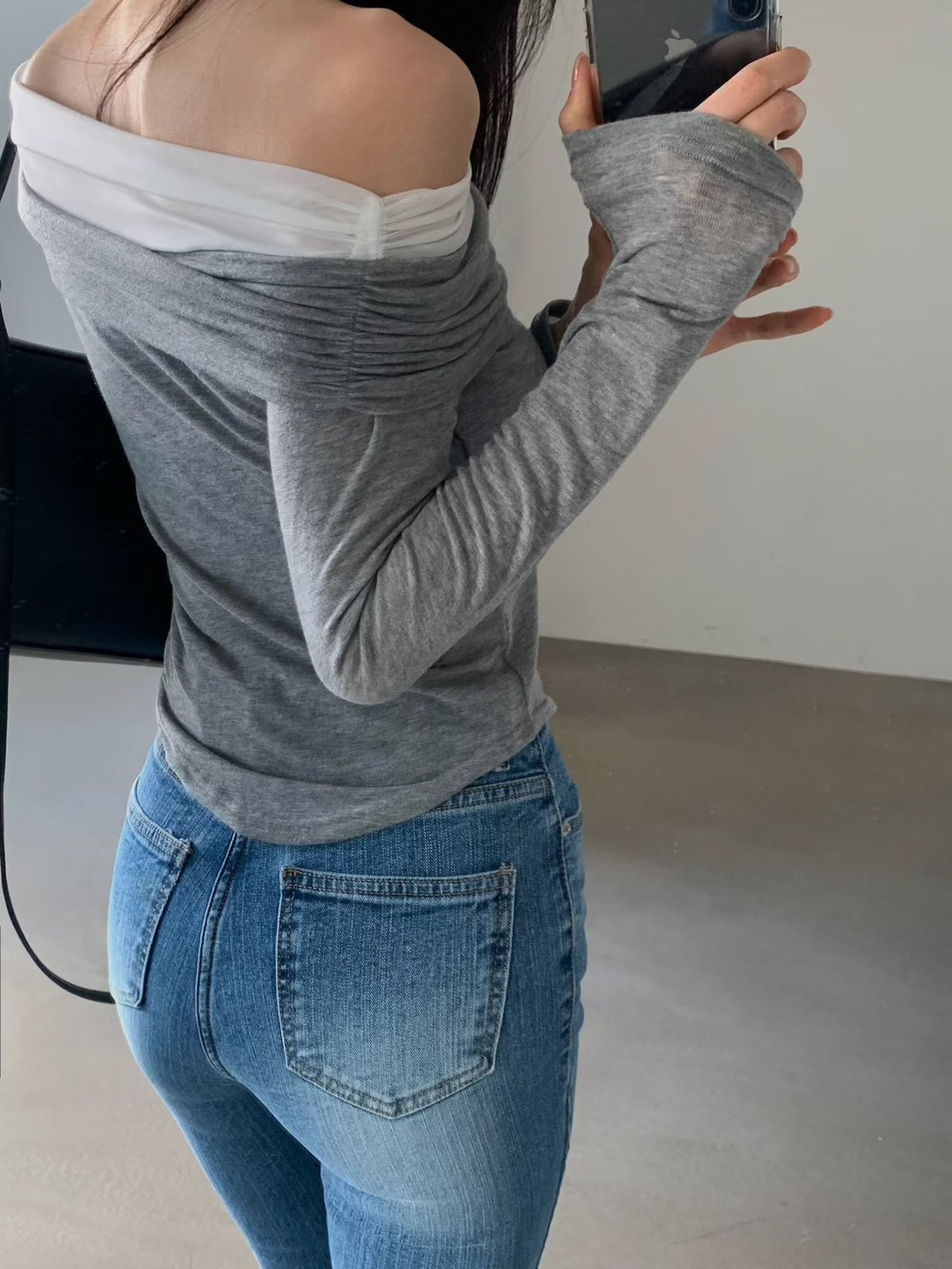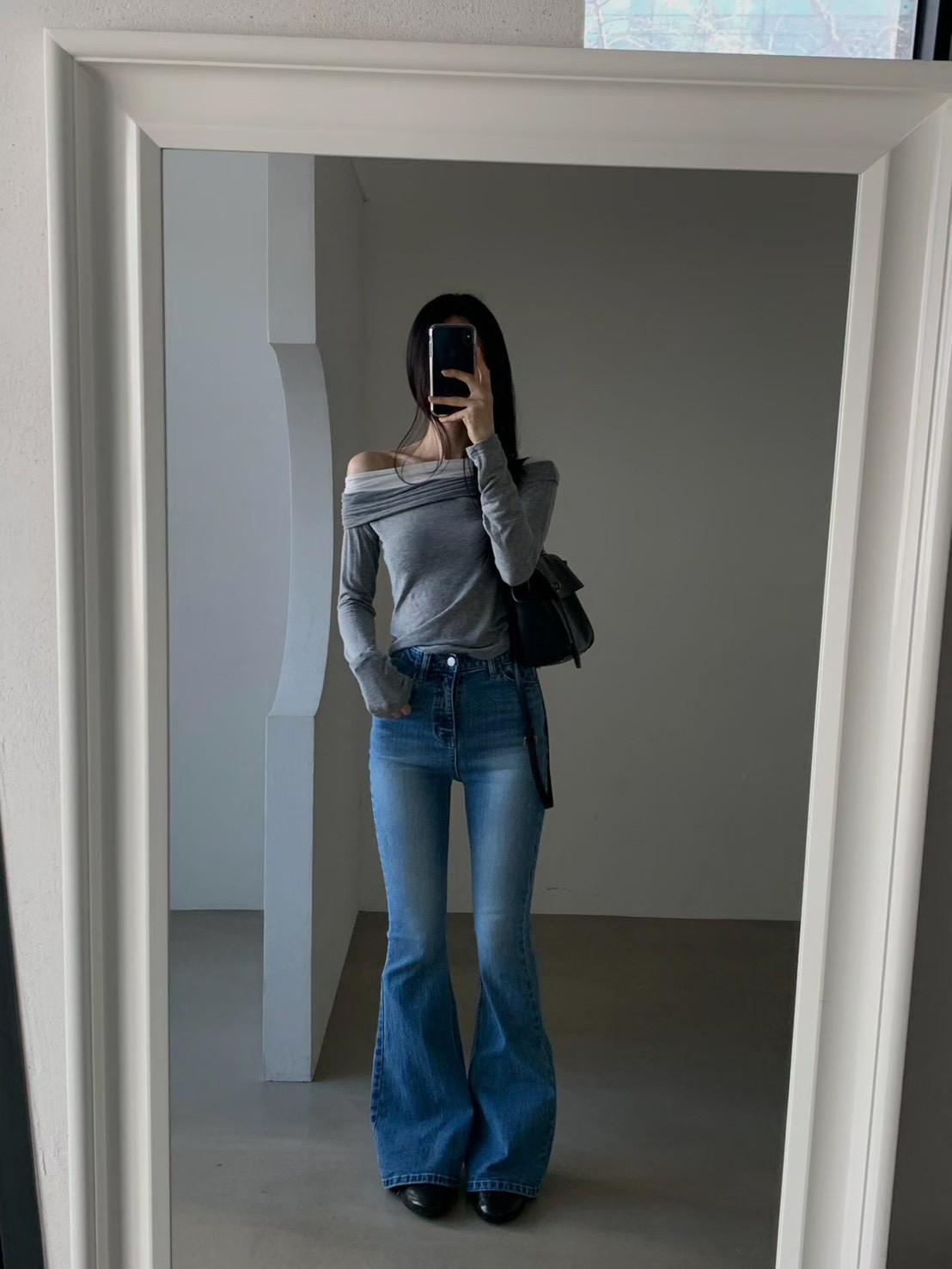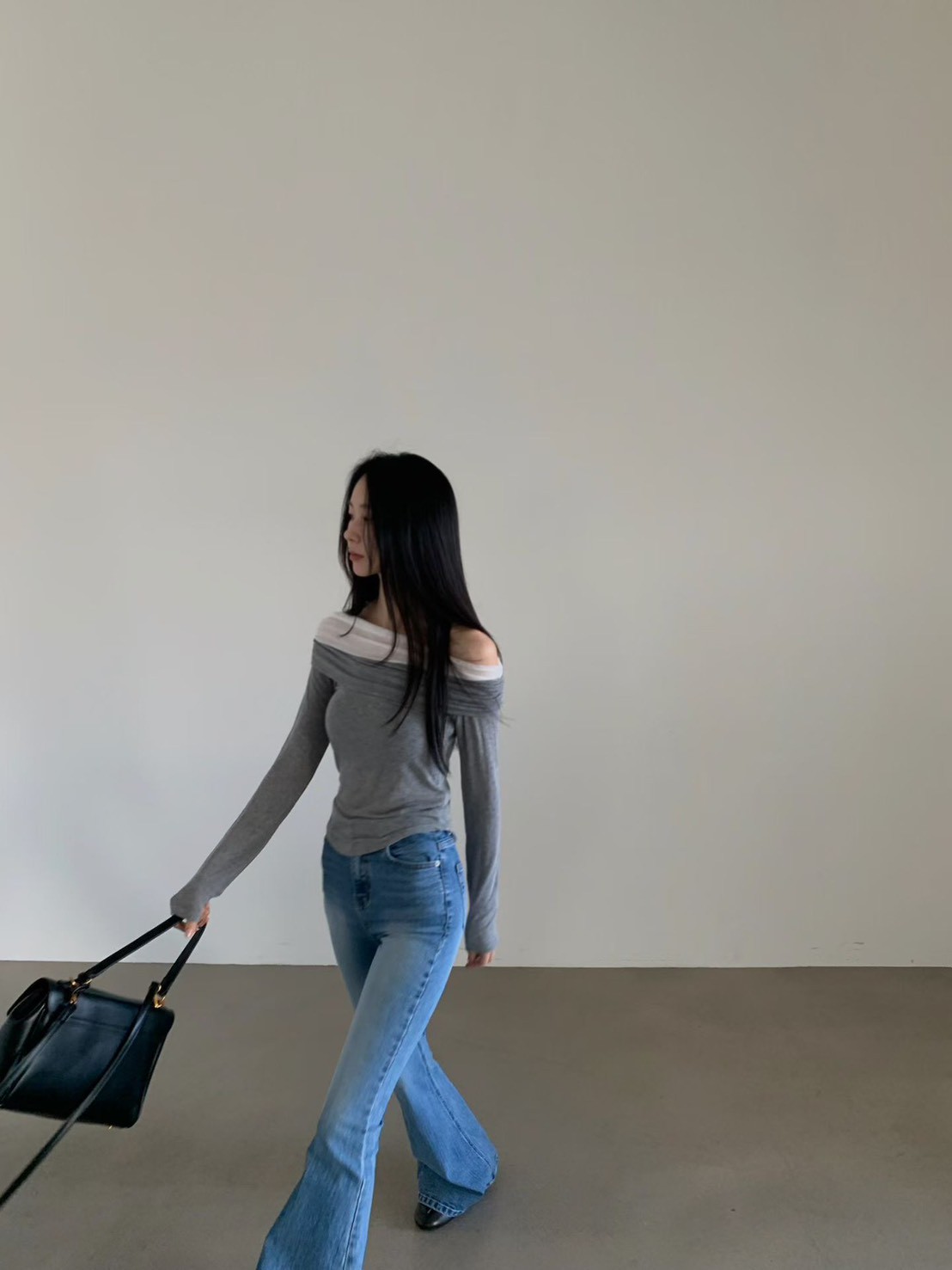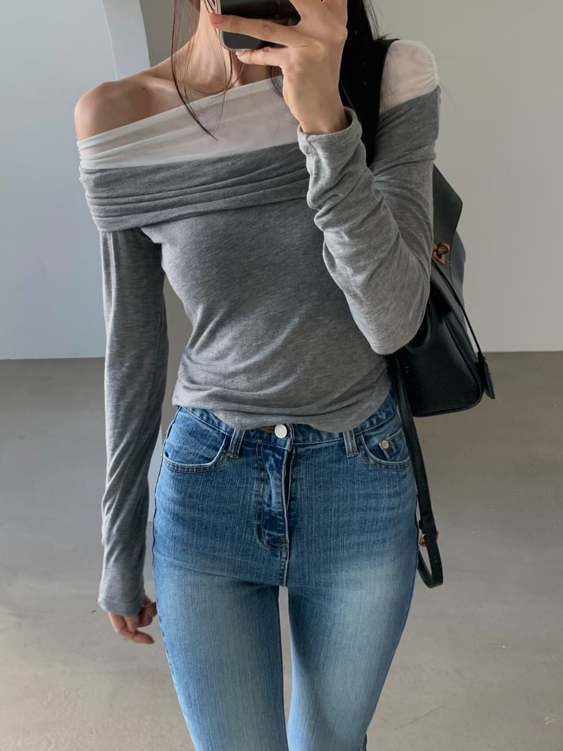 霧灰刷色高腰微寬直筒褲