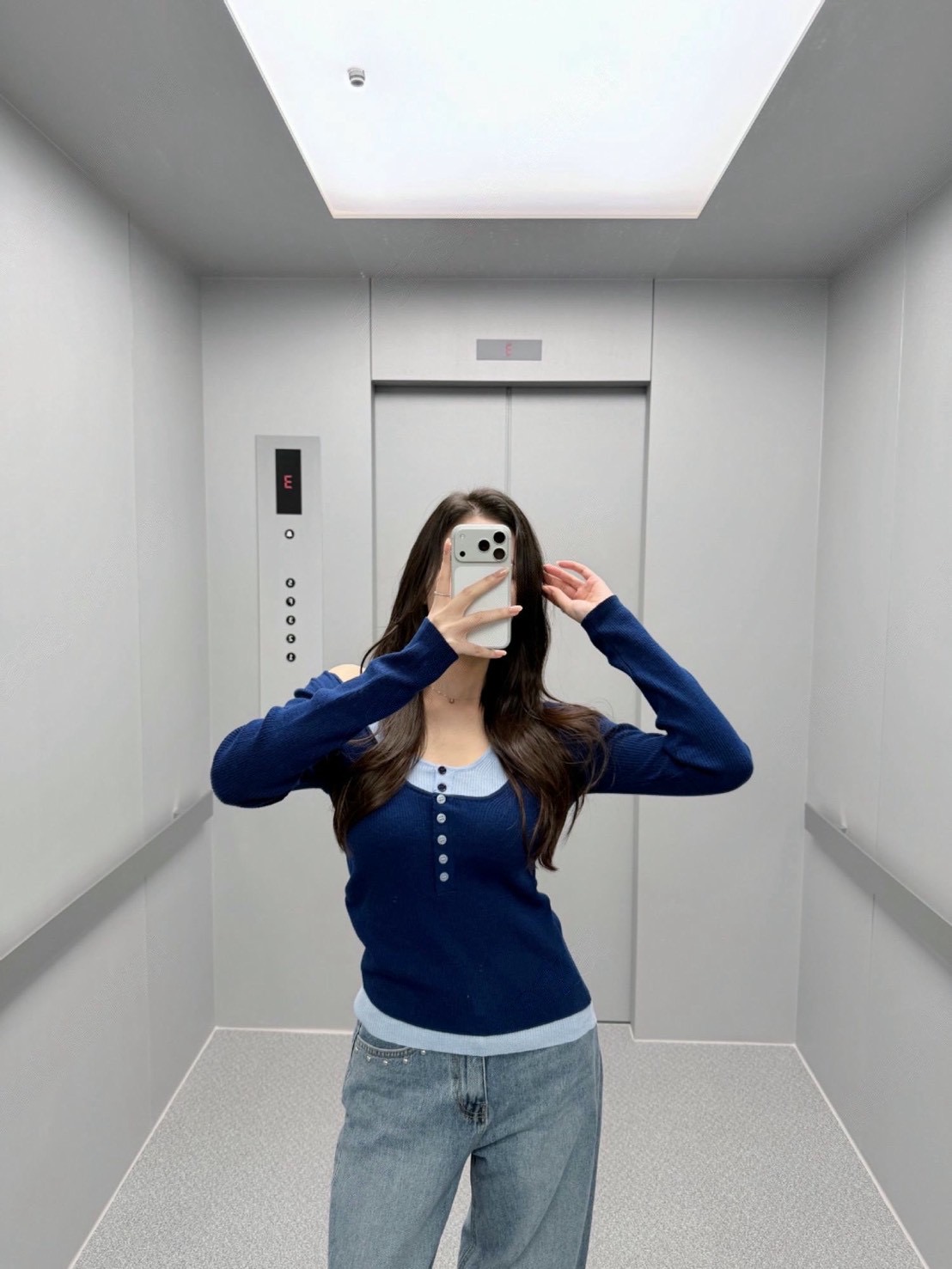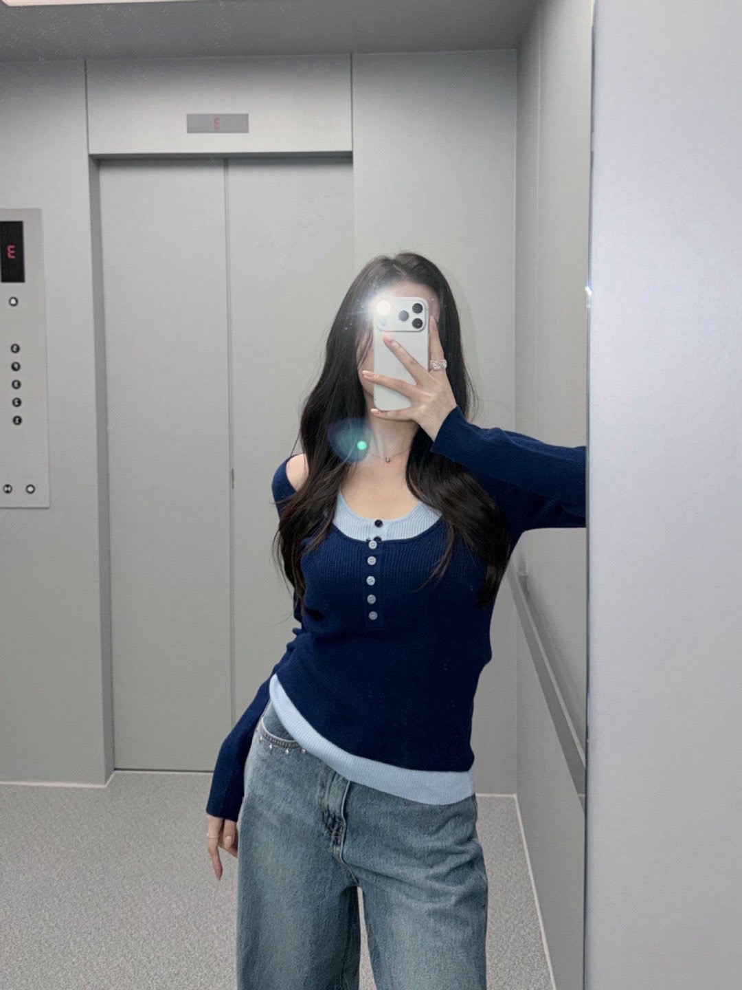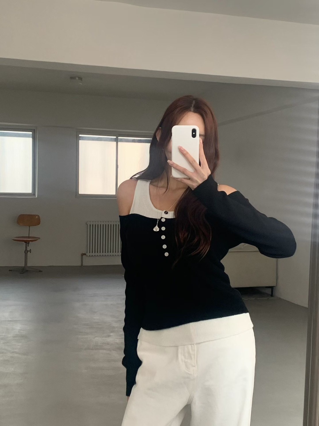 假兩件撞色U領排釦針織衫