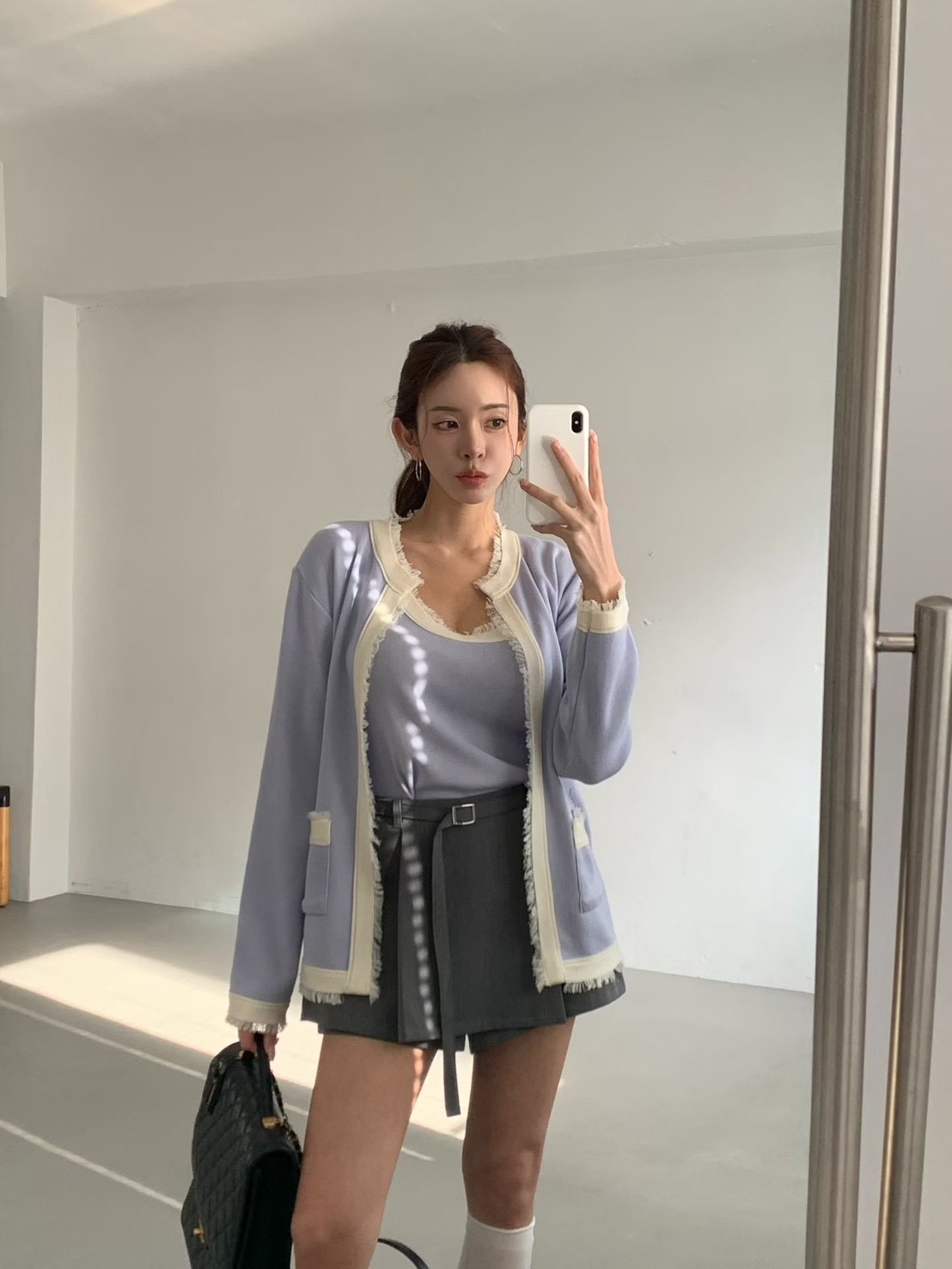 圓領抽鬚滾邊開心外套+撞色背心SET