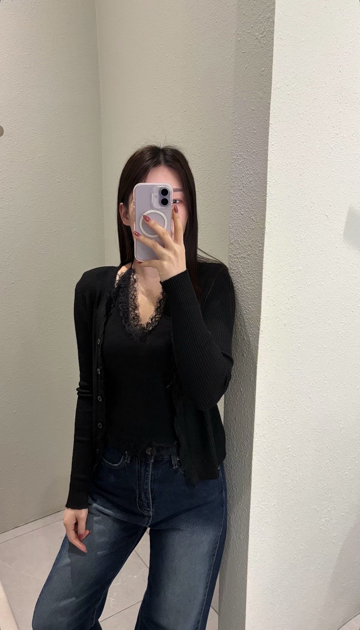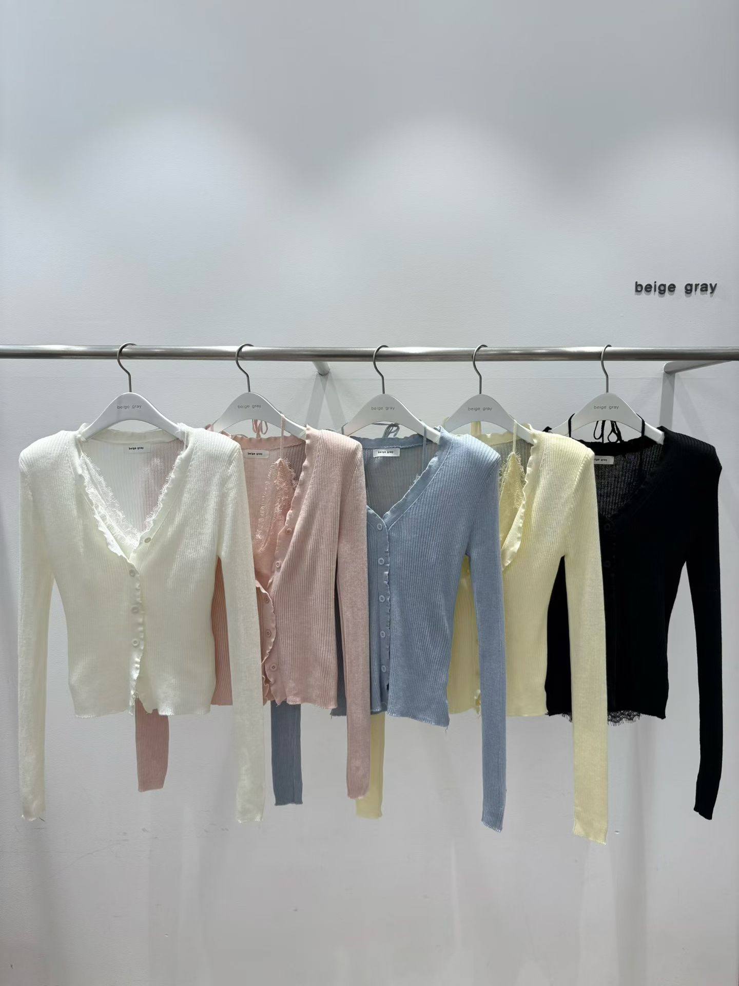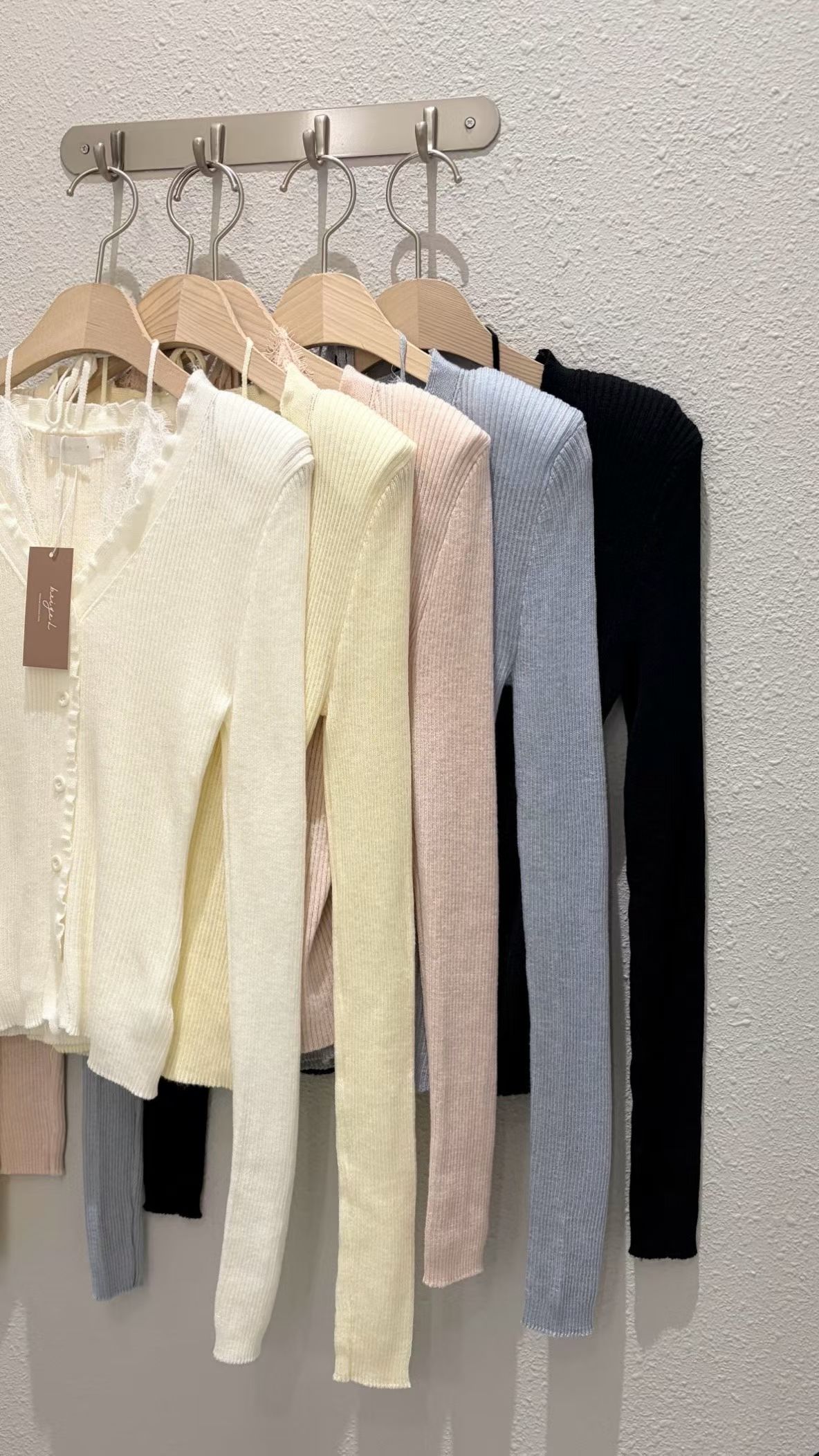蕾絲滾邊背心+排釦外套假兩件針織衫
