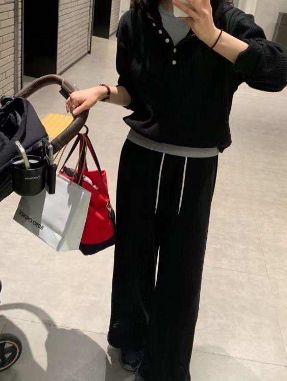 半排扣連帽上衣+長褲SET
