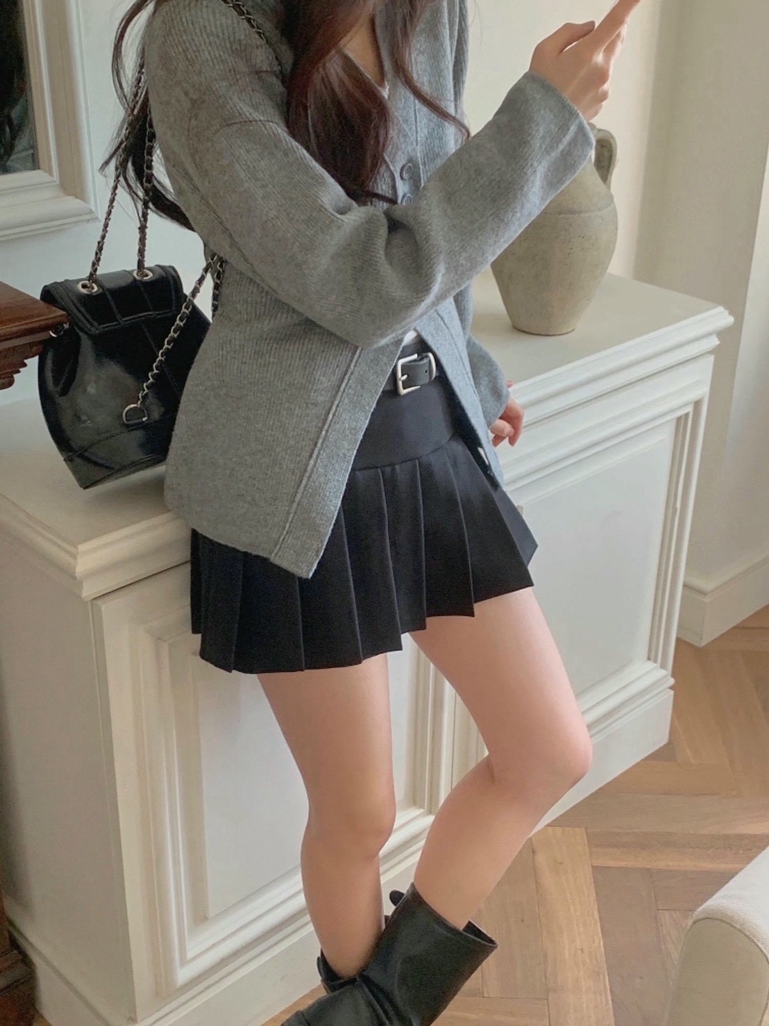 半拼接百摺辣款迷你短褲裙