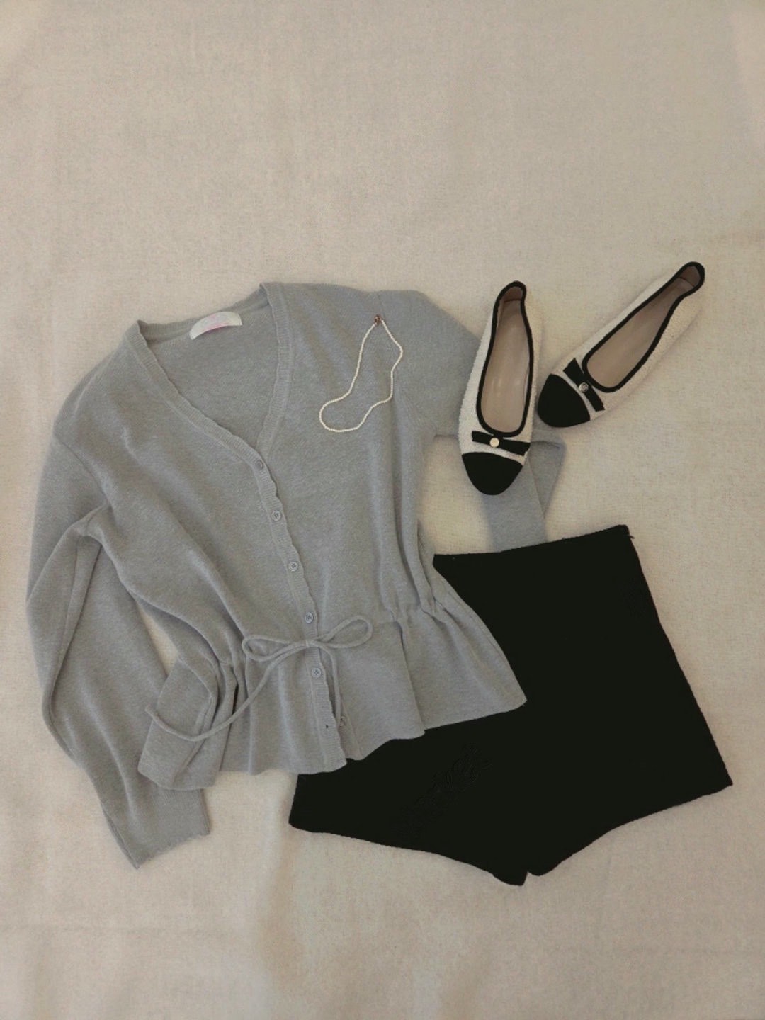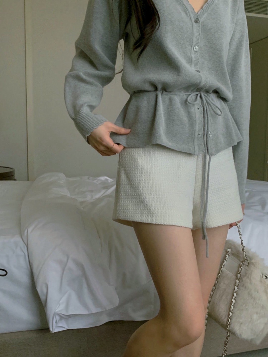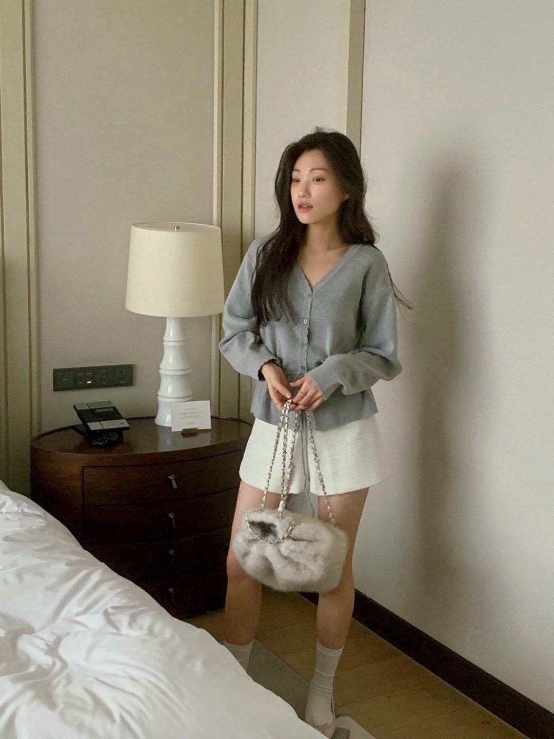 短毛圓領排釦針織衫+鬆緊A字短裙SET