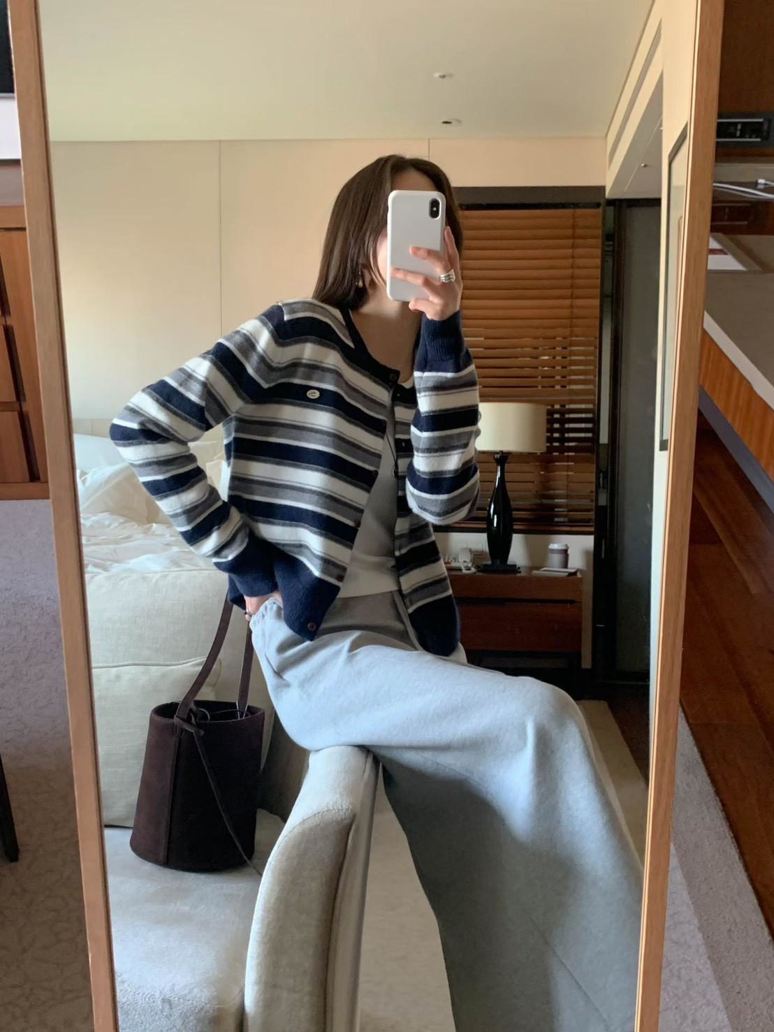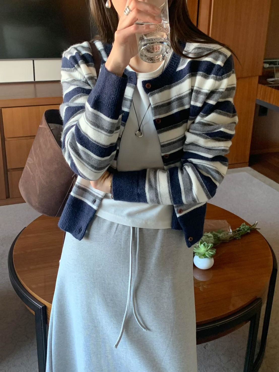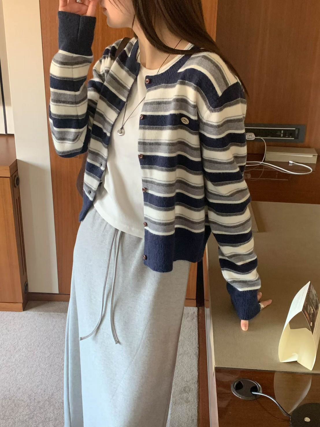 小徽章條紋針織外套上衣