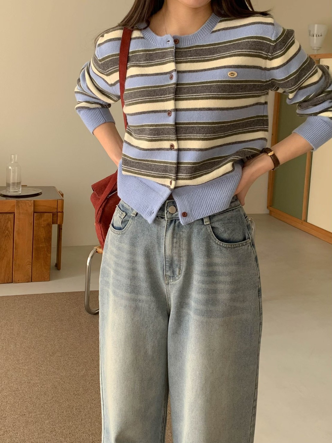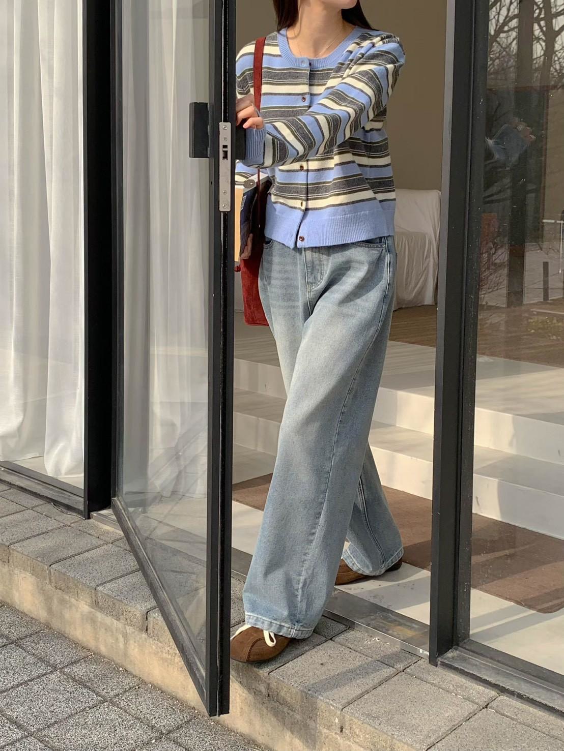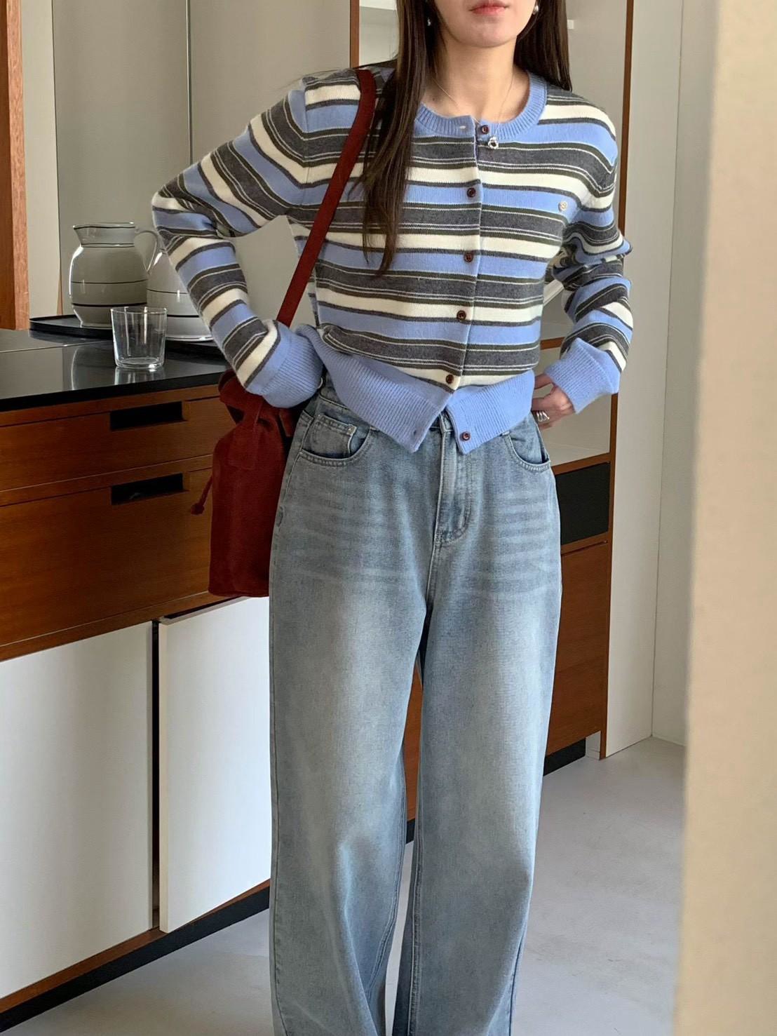 小徽章條紋針織外套上衣