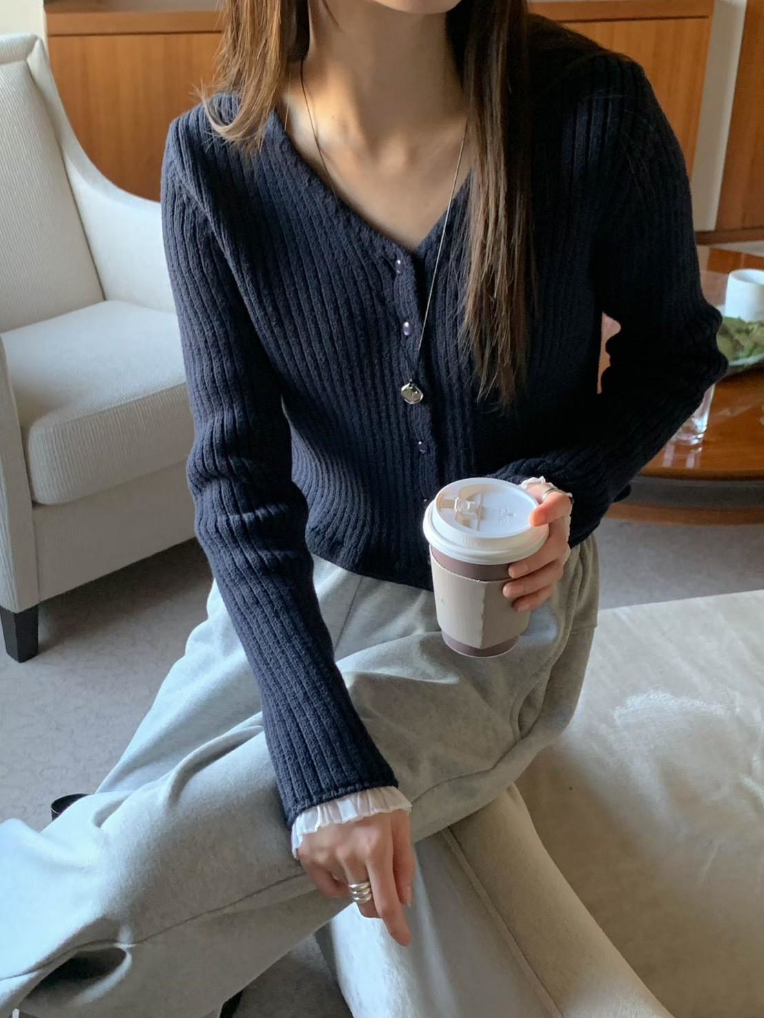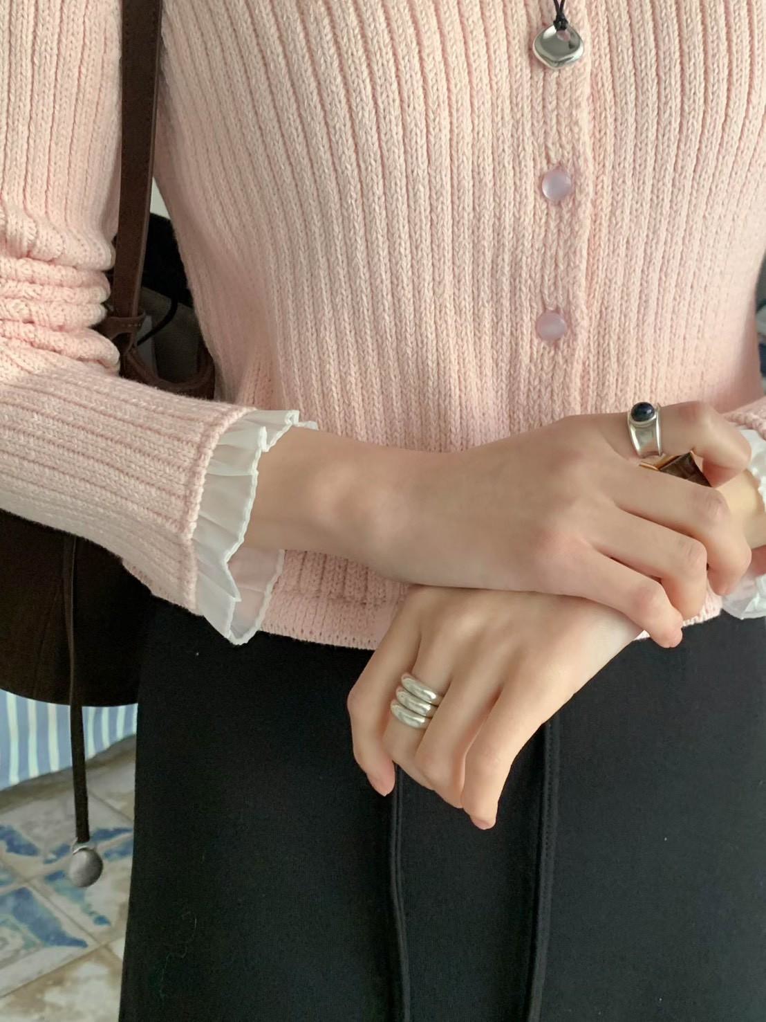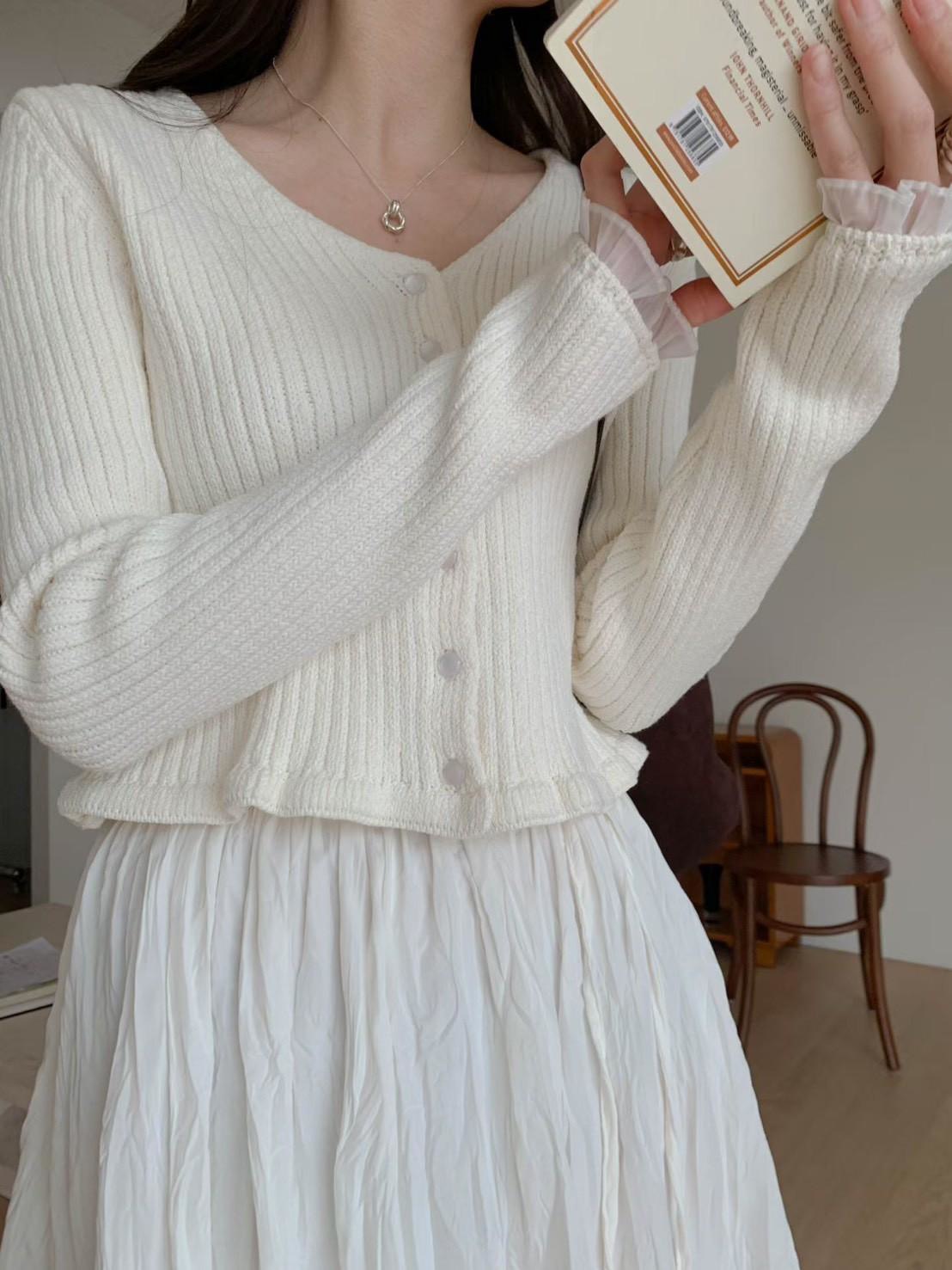 V領手袖拼接針織上衣