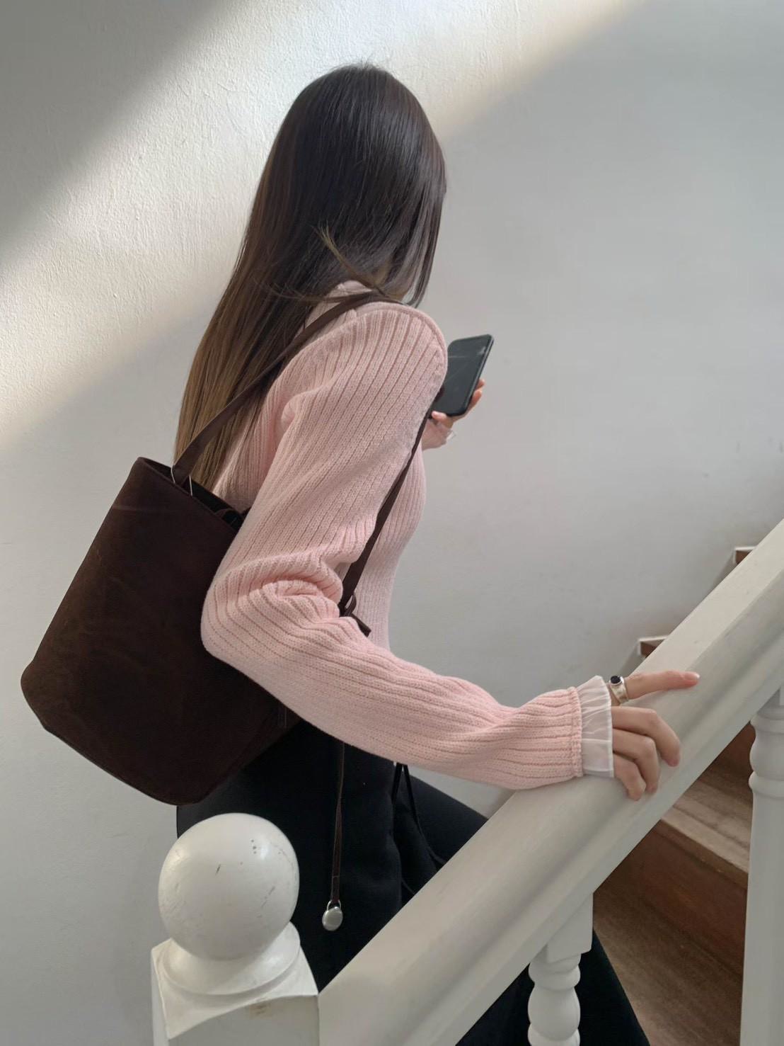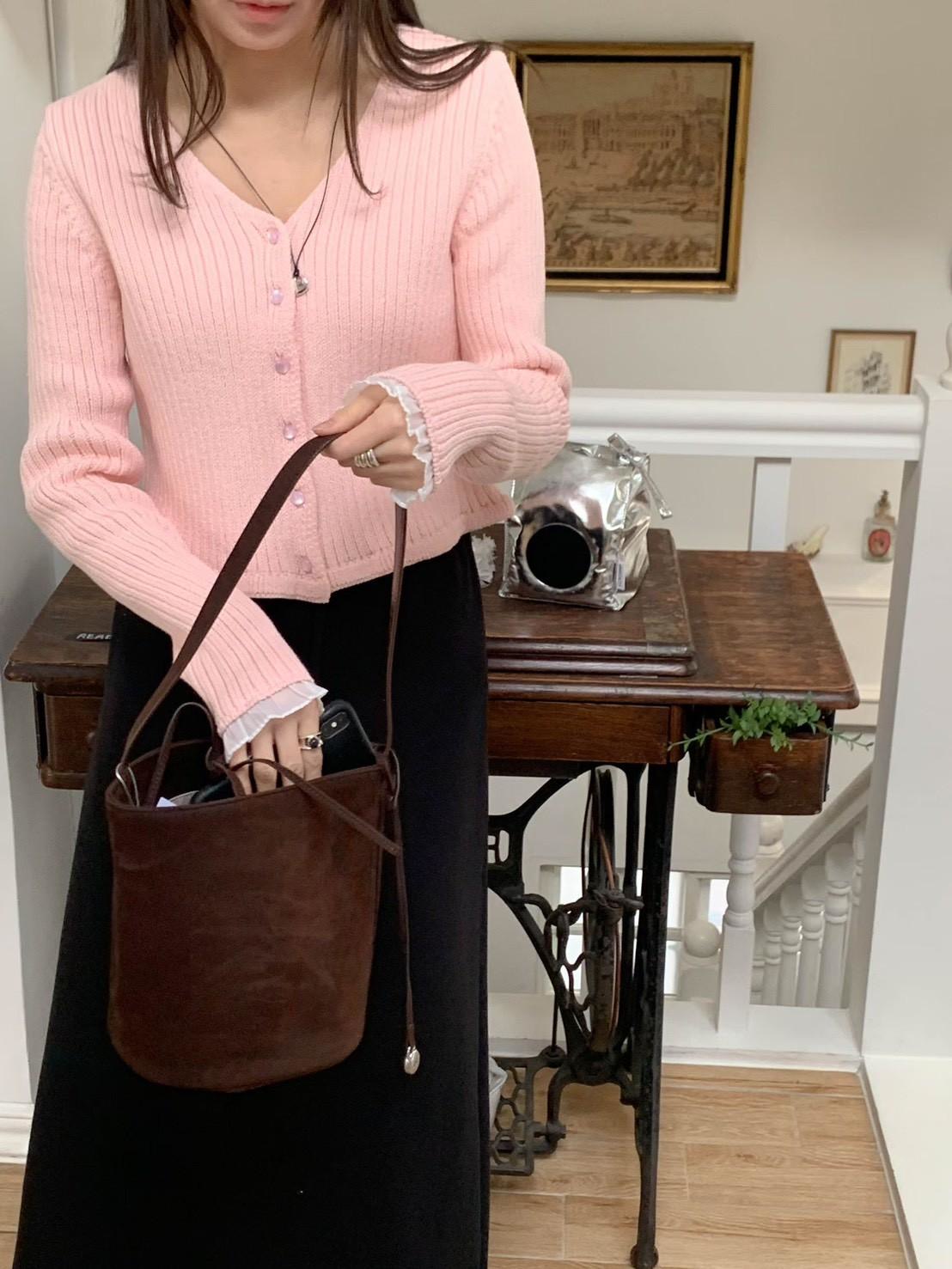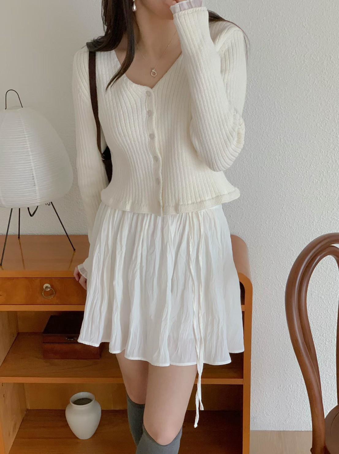 V領手袖拼接針織上衣