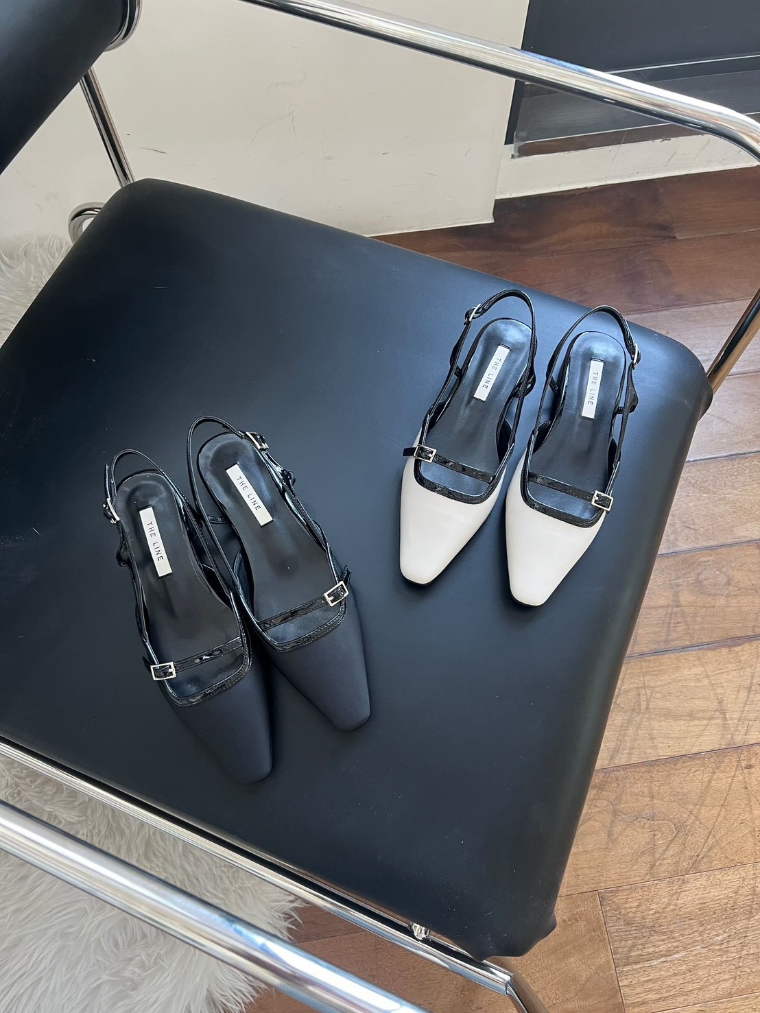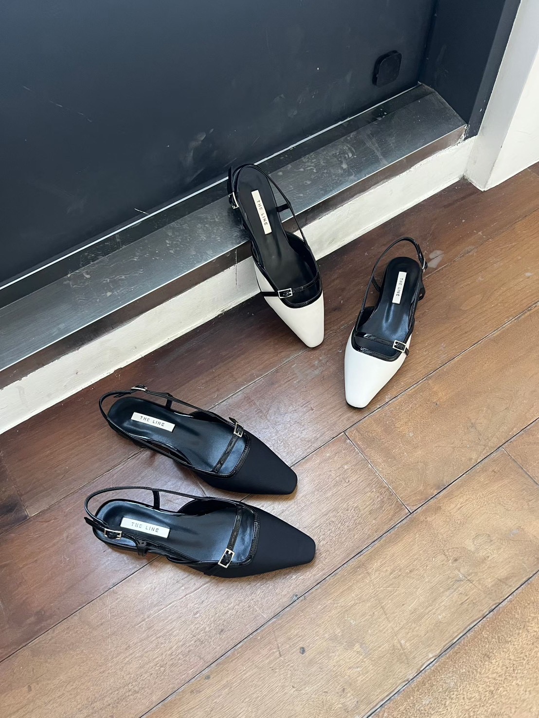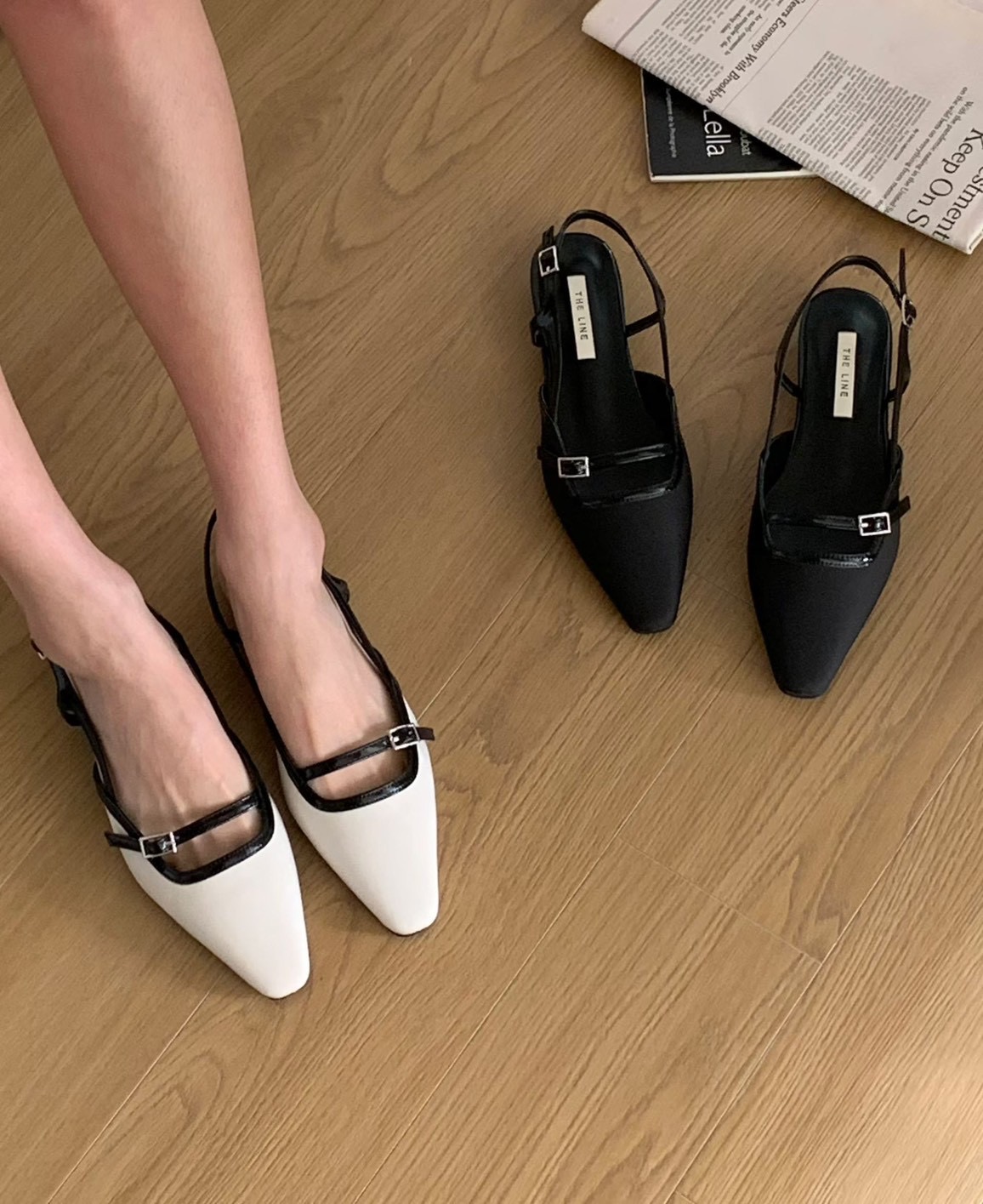 方頭撞色一字扣帶低跟鞋(2cm)