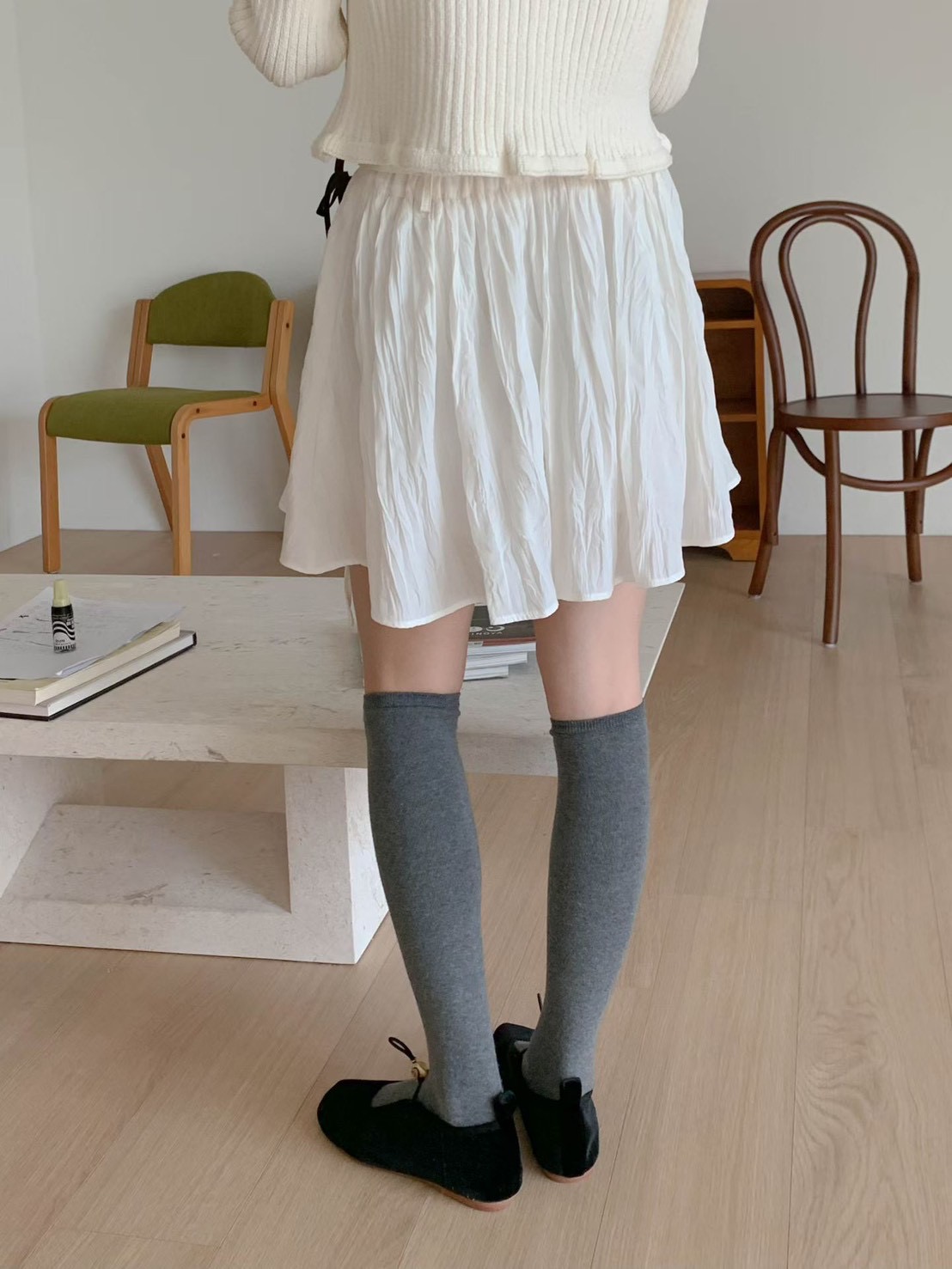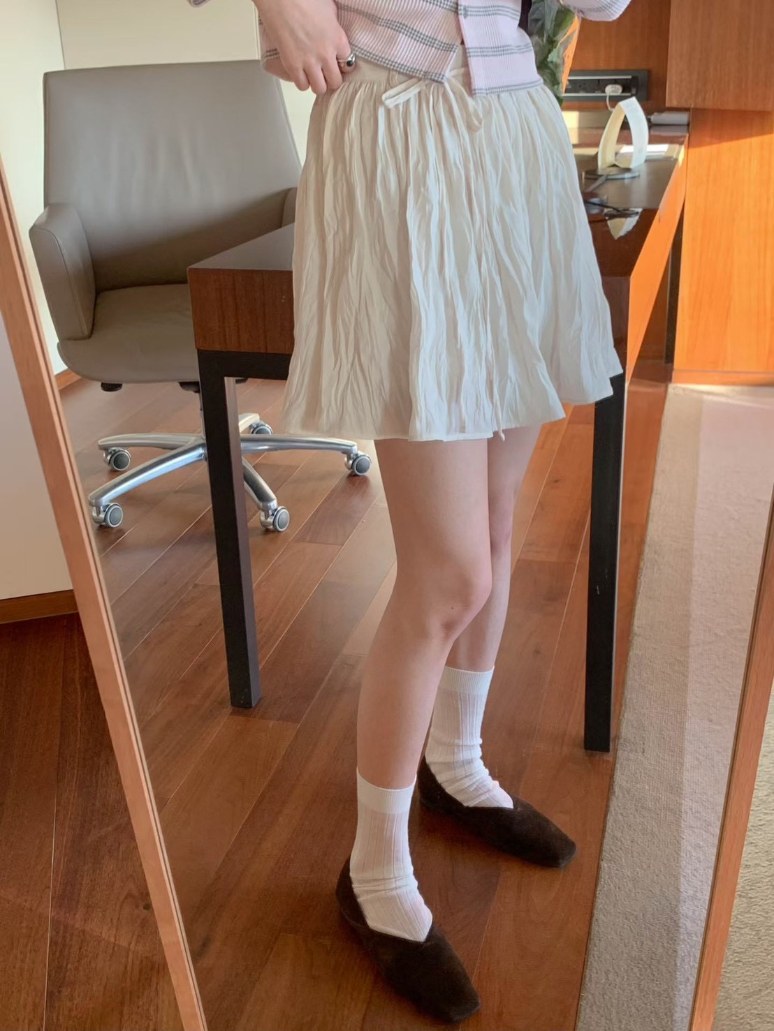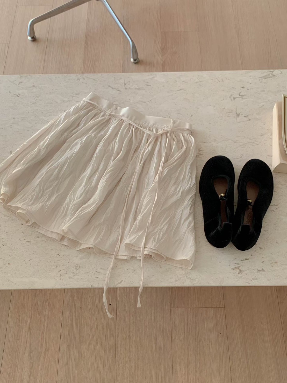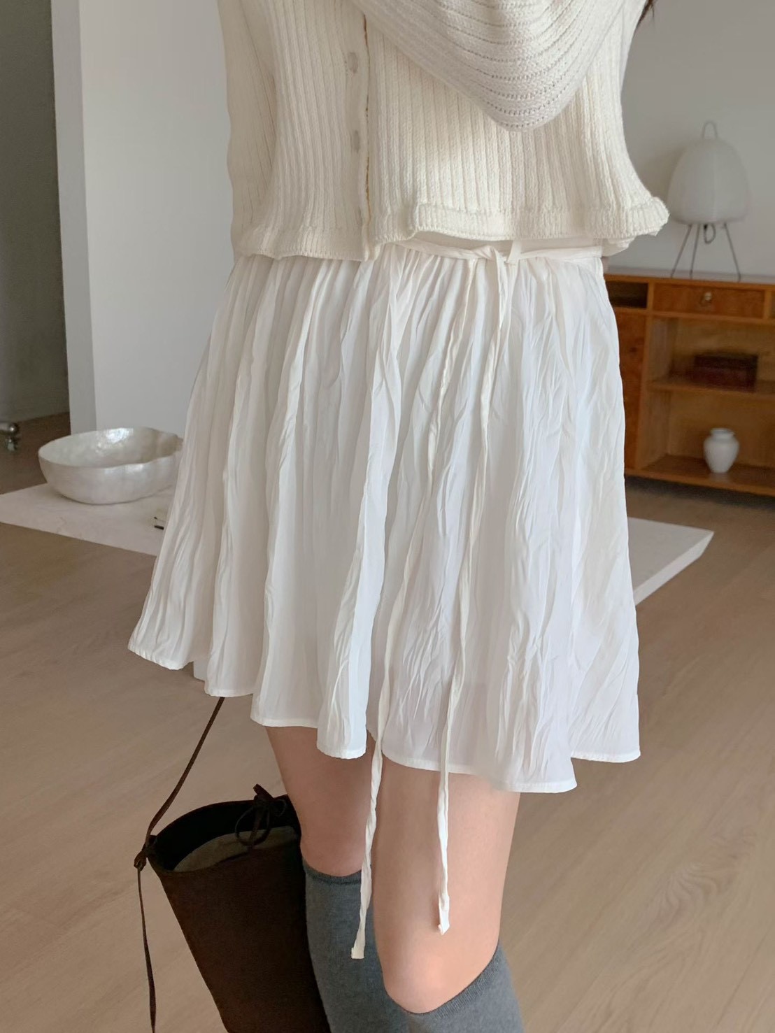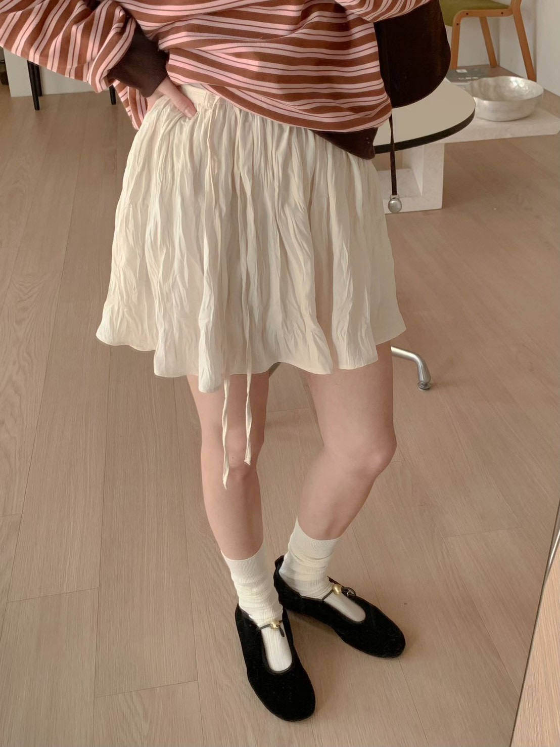 光澤感波紋壓皺雪紡短裙