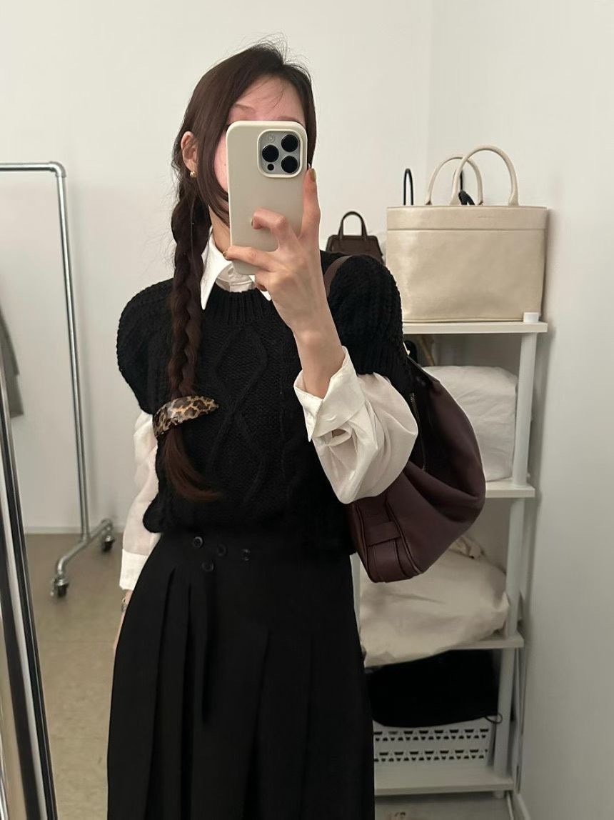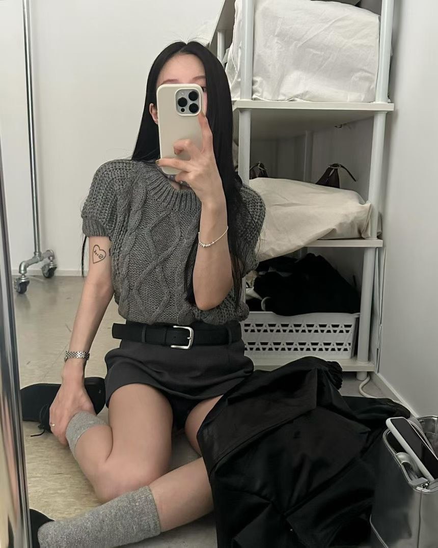 立體麻花短袖針織衣