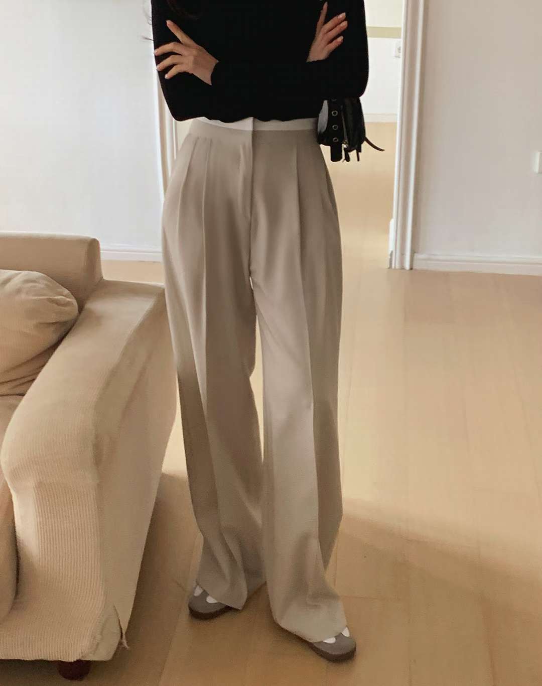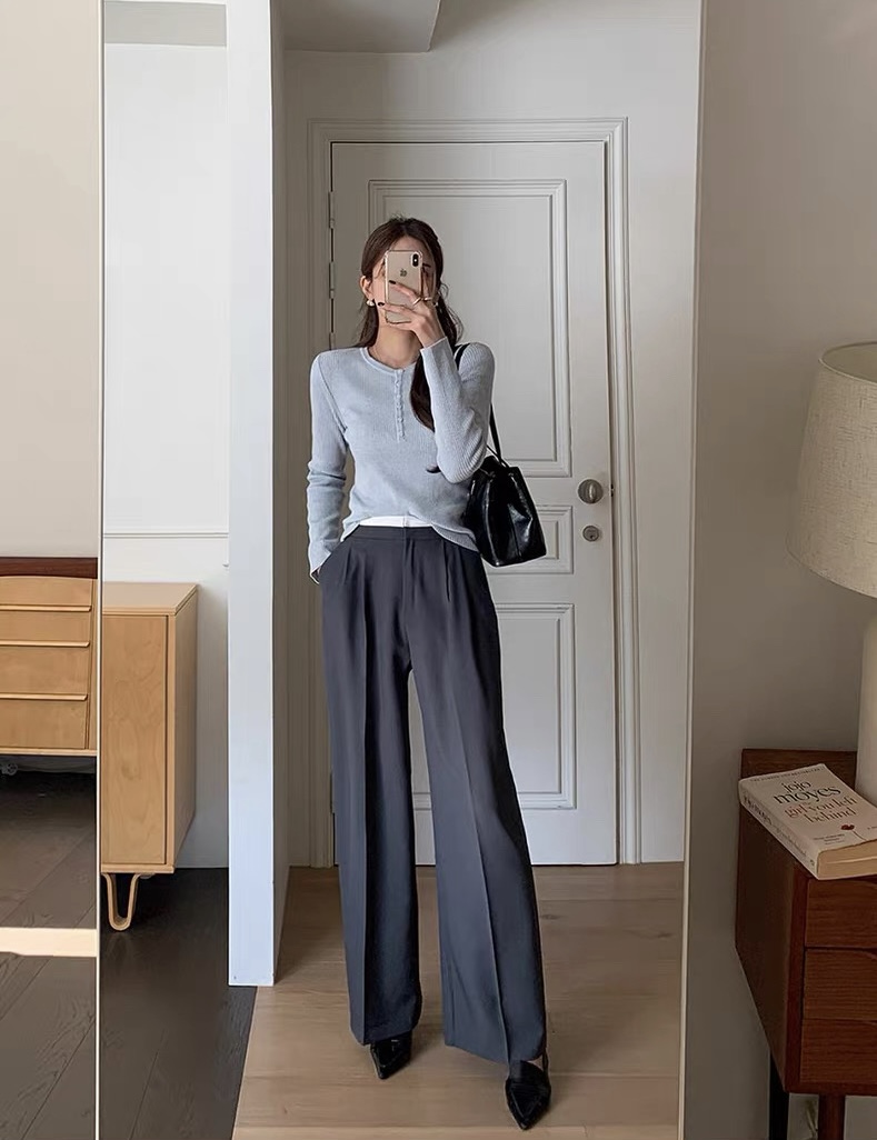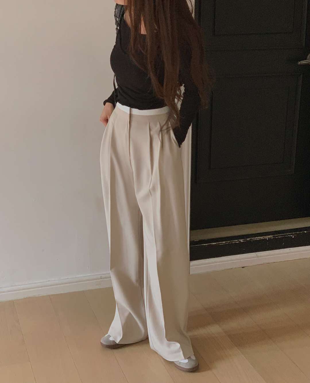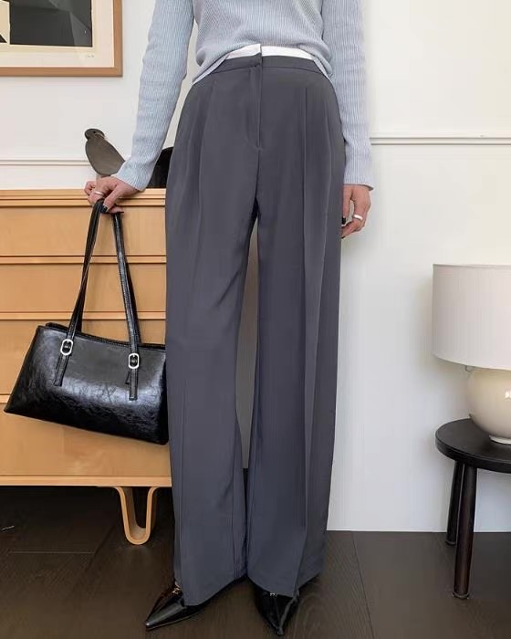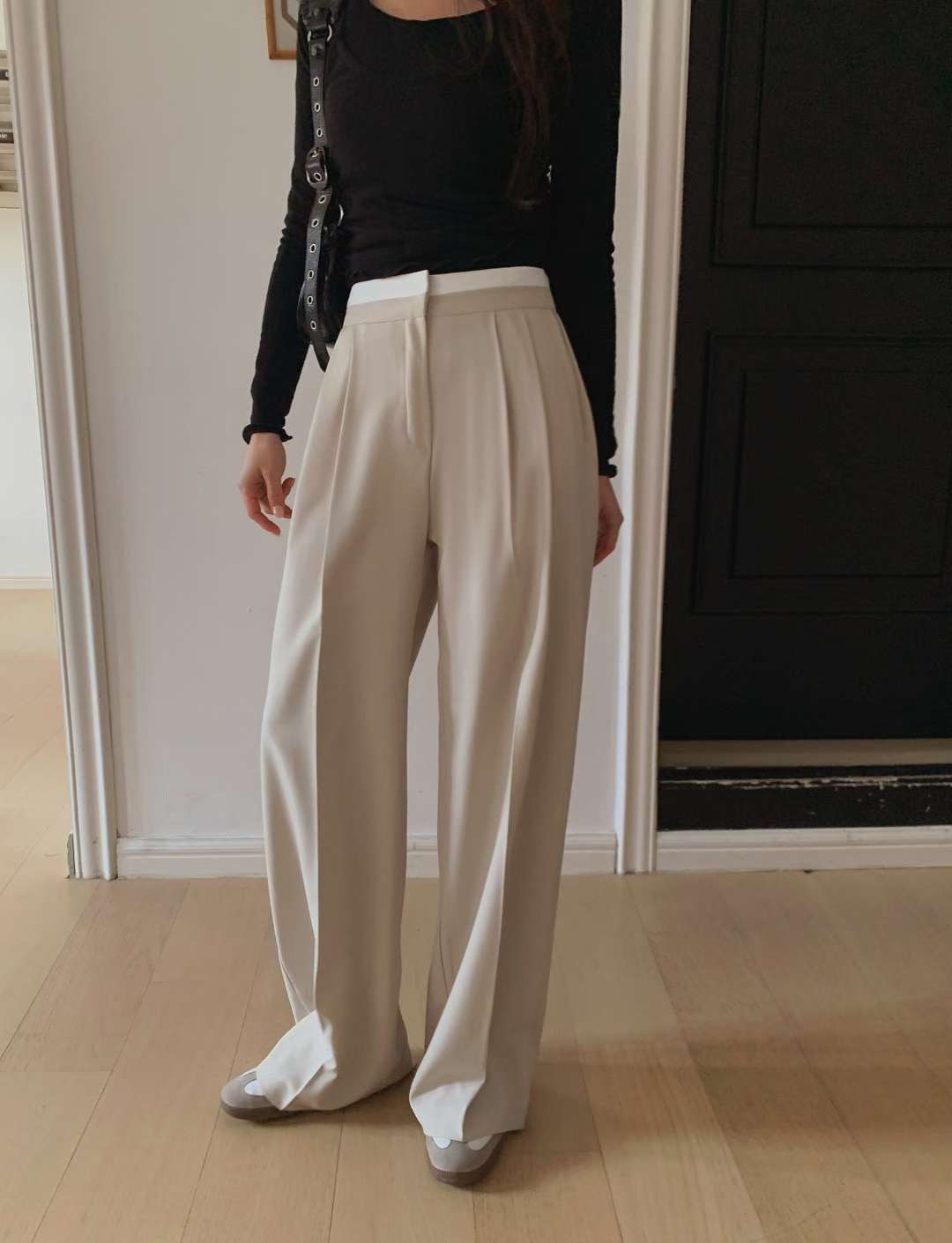 (客訂勿下單)腰間撞色前壓褶落地西裝褲