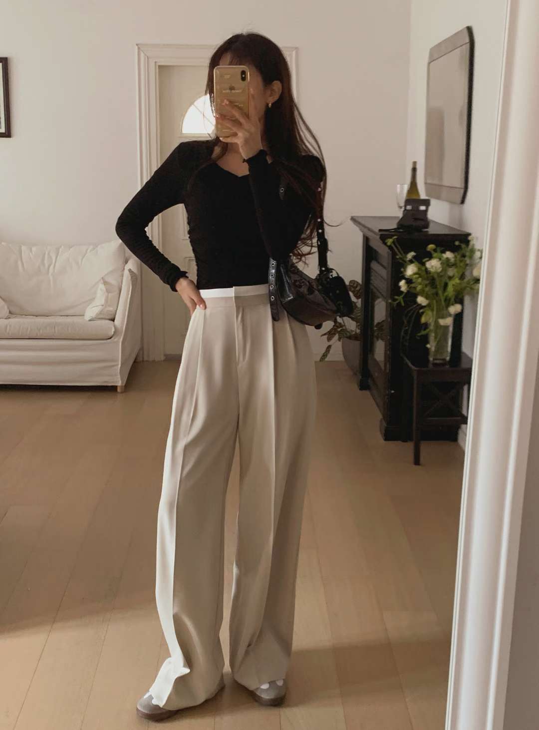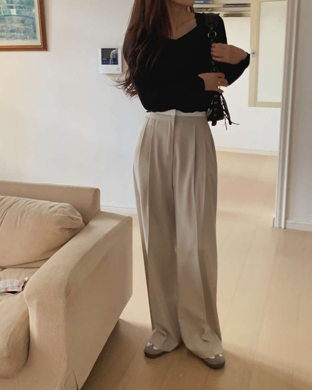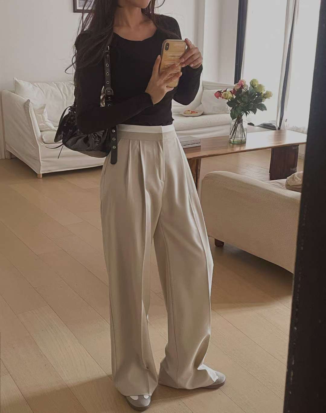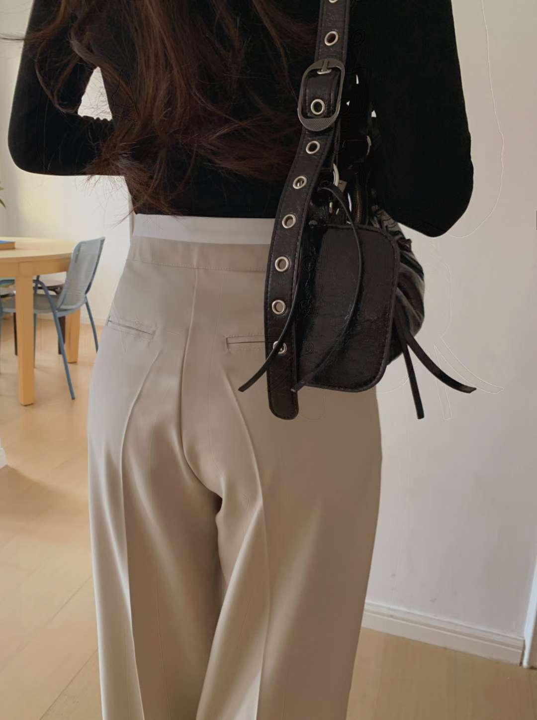 (客訂勿下單)腰間撞色前壓褶落地西裝褲